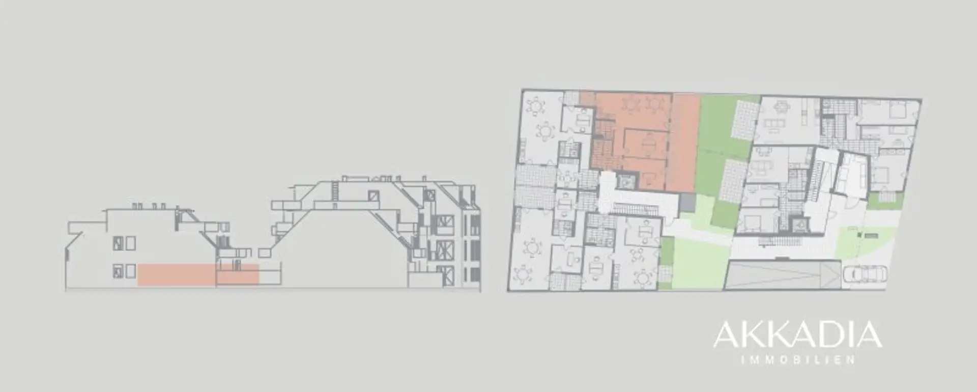 Durch die ebenerdige Lage, den direkten Außenbezug und die flexible Grundrissgestaltung eignet sich diese Einheit besonders für kundenorientierte Nutzungen mit Anspruch auf Freiraum.