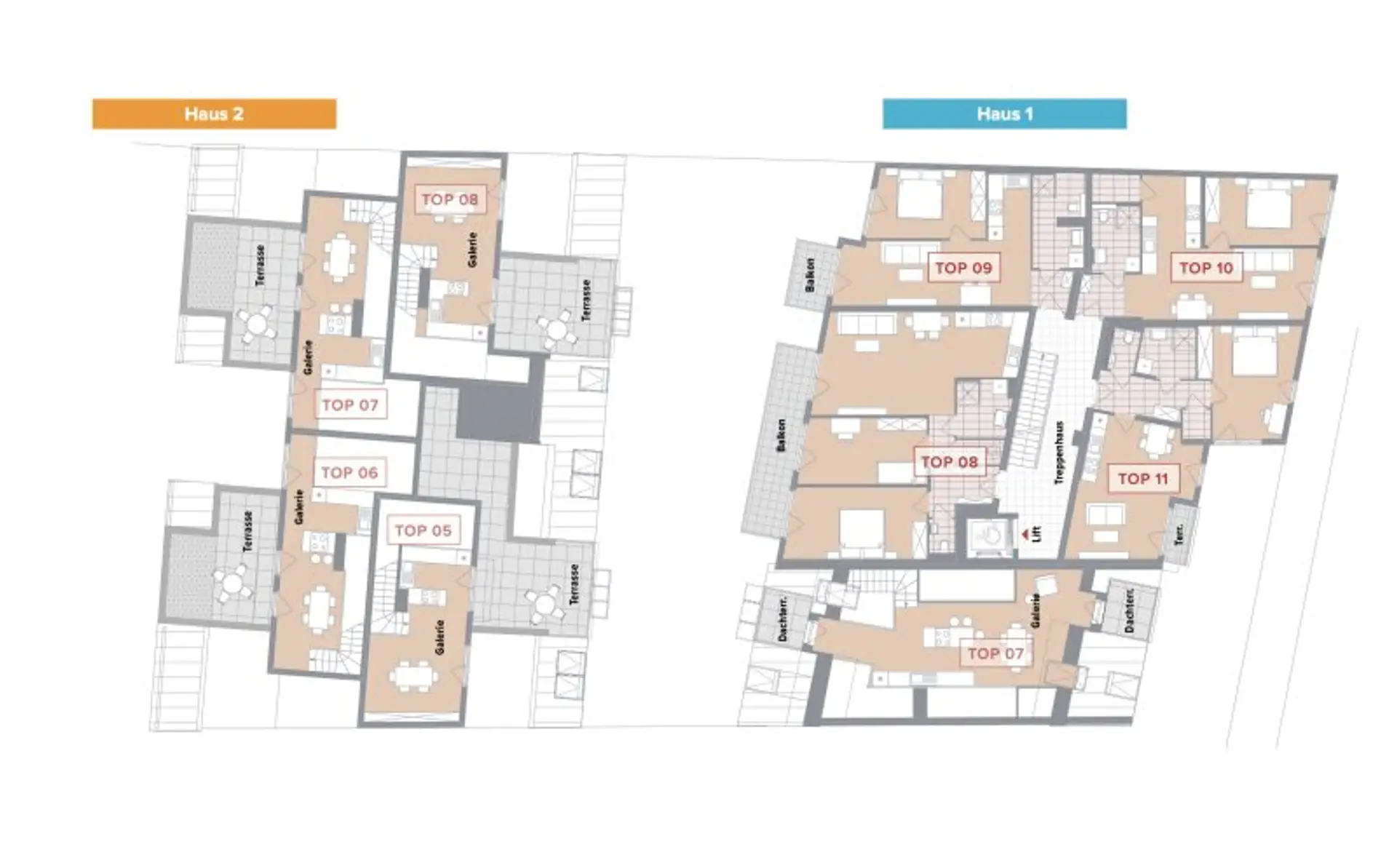 | Top Nr. | Stockwerk | Zimmer | Wohnfläche | Preis | Status |
