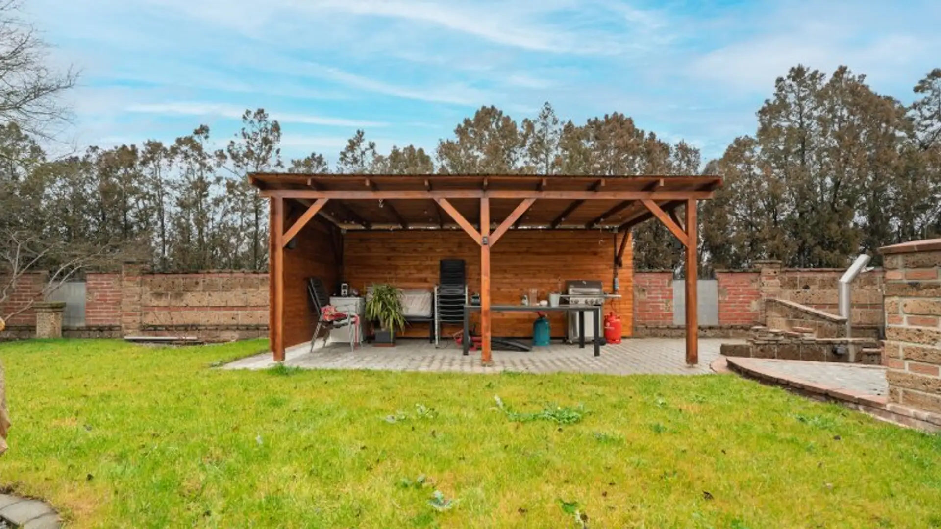 Die überdachte Terrasse, direkt vom Essbereich begehbar, bietet den perfekten Rahmen für gemütliche Familienfeiern. Ein Grillplatz sowie mehrere geschmackvoll angelegte Beete machen den Außenbereich besonders attraktiv für Gartenliebhaber.