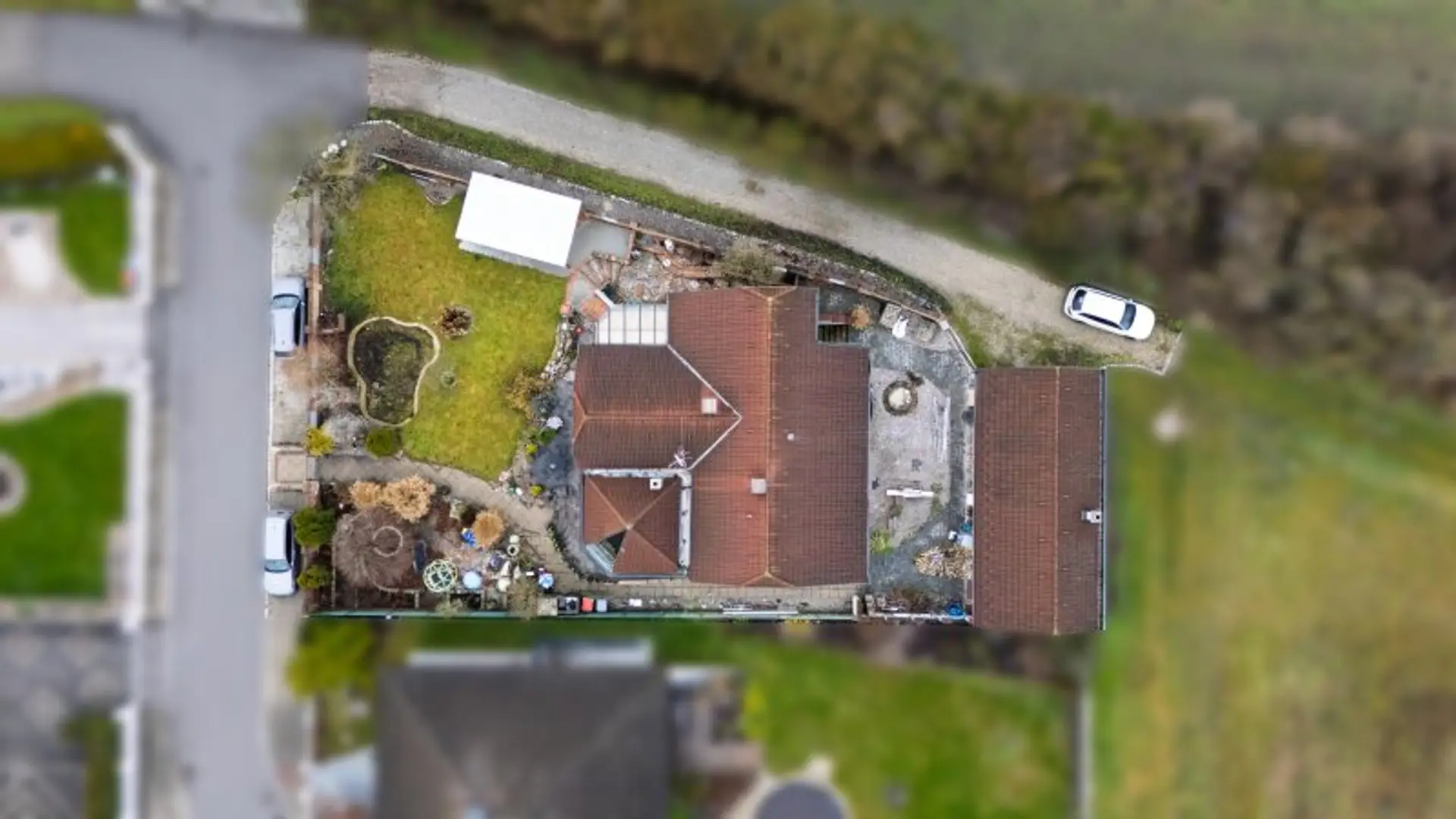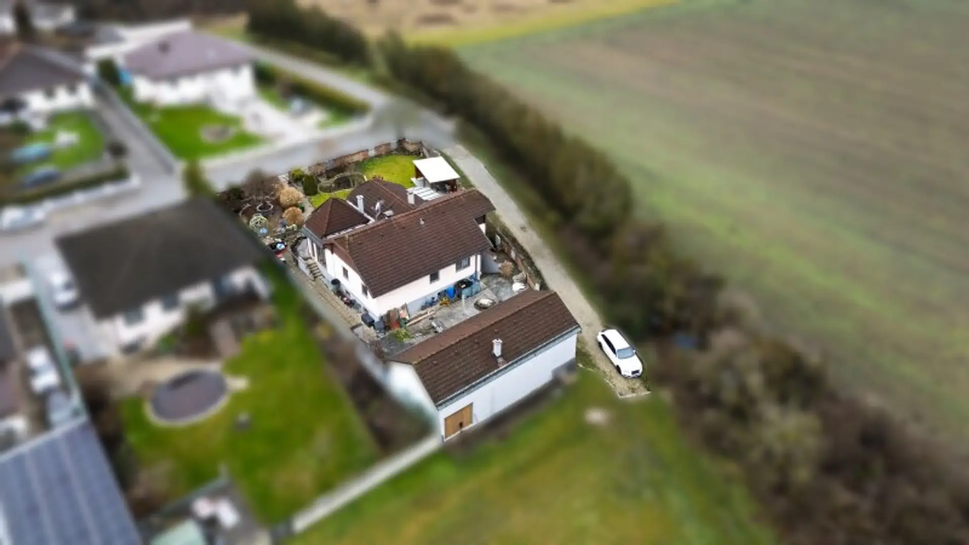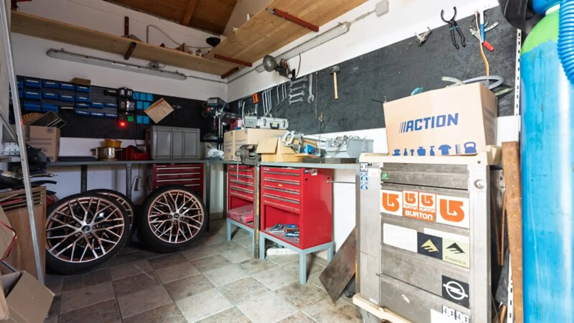 Das Wohnhaus liegt in einer ruhigen Gasse. Über eine seitliche Zufahrt gelangt man zur freistehenden Doppelgarage, die Platz für zwei PKW, Werkzeug sowie zusätzlichen Stauraum bietet. Direkt bei der Garage befindet sich ein großzügiger Lagerbereich und eine Werkstatt. Von hier aus erreicht man in wenigen Schritten den Kellerabgang des Hauses.