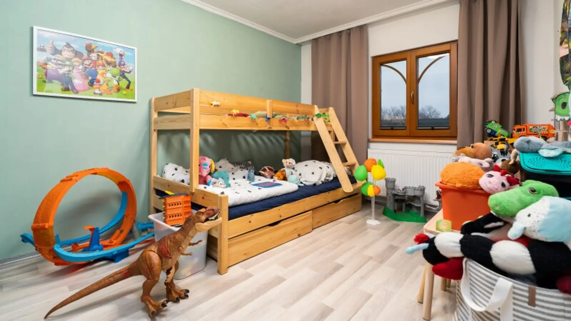 Erdgeschoss: Eingangsbereich/Wintergarten, zentrales Vorzimmer, großzügiger und heller Wohn-Essbereich, 3 Schlafzimmer, 1 Badezimmer, separates WC, 2 Abstellräume