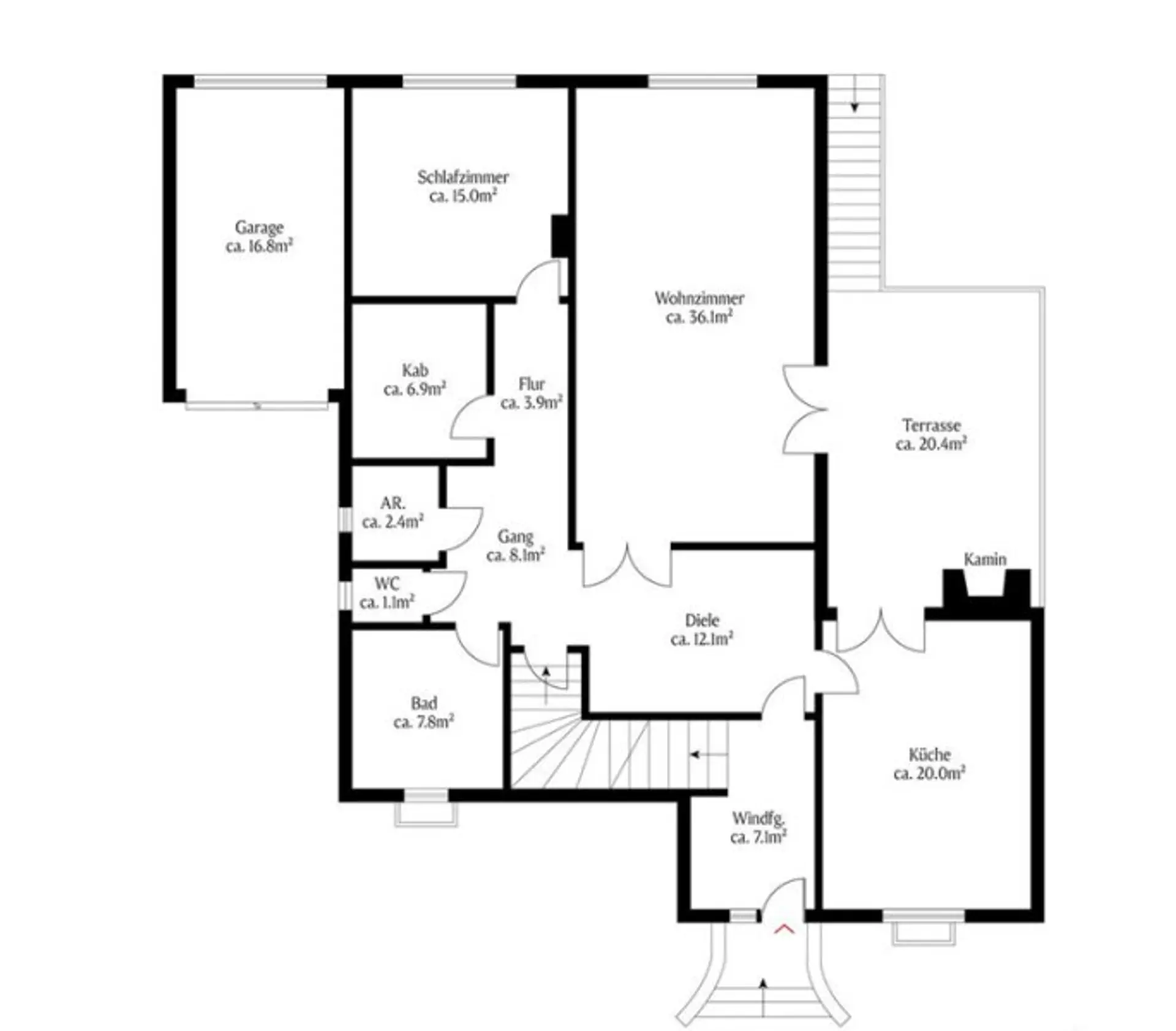 * Nutzfläche: ca. 374 m², verteilt auf drei Geschosse.