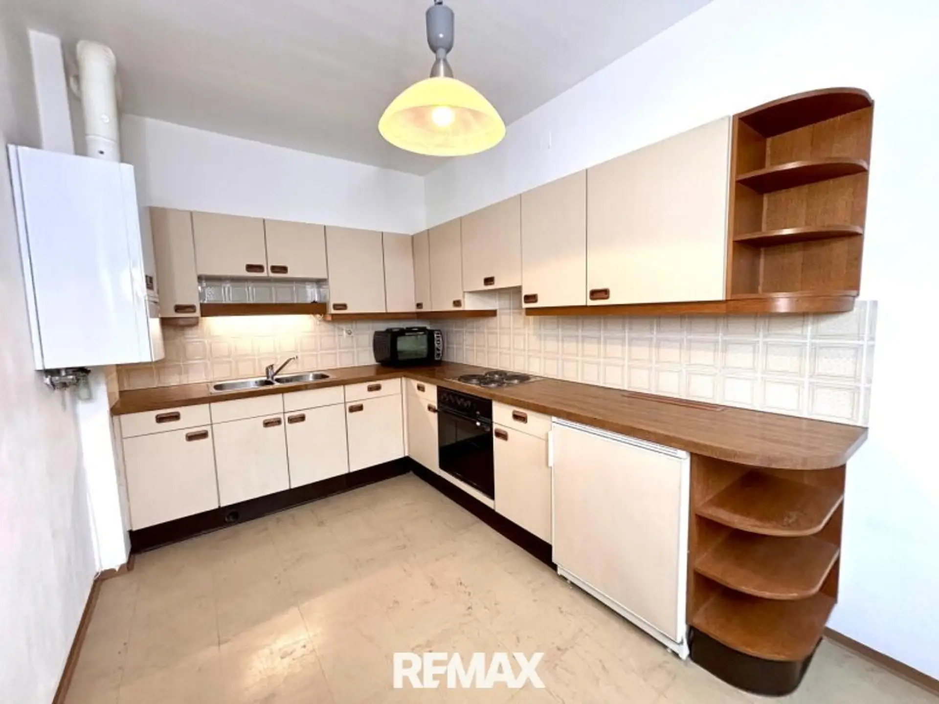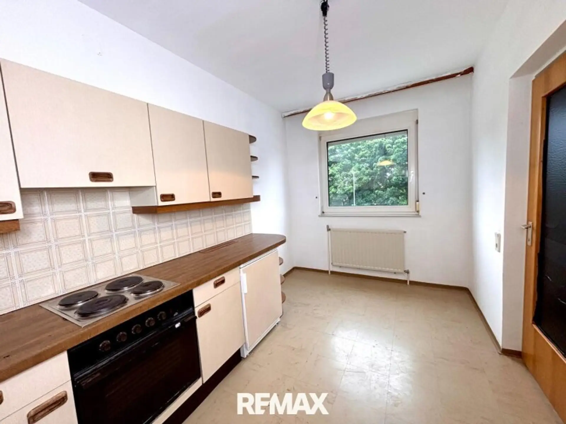 Der lichtdurchflutete Wohn-/Schlafbereich überzeugt mit großzügigen Fenstern und freundlicher Atmosphäre. Die separate, voll ausgestattete Küche bietet ausreichend Platz für kulinarische Entfaltung – ein seltener Komfort in dieser Wohnungsgröße.