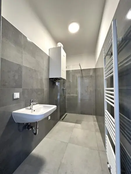 - Badezimmer mit Dusche & Waschmaschinenanschluss