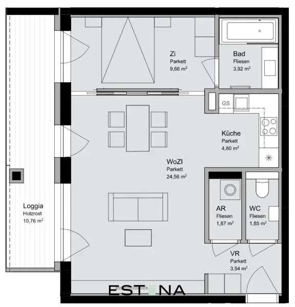 - geräumige Wohnküche mit Zugang zur Loggia