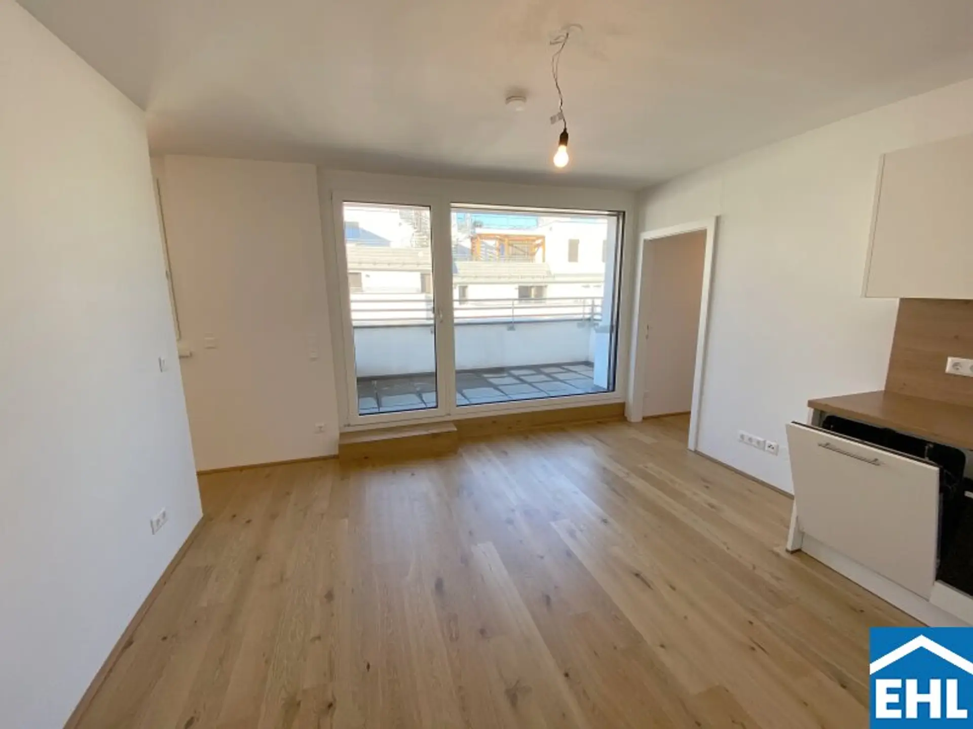 Diese gut geschnittene 2-Zimmer-Wohnung befindet sich in der 5. Etage des Hauses und überzeugt durch eine durchdachte Raumaufteilung eine gemütliche Terrasse sowie einen angrenzenden Balkon, die zum Entspannen im Freien einladen. Der Wohnbereich umfasst eine moderne, vollausgestattete Wohnküche, ein getrennt begehbares Schlafzimmer, ein Badezimmer mit Dusche und WC, sowie einen praktischen Abstellraum und einen einladenden Vorraum.