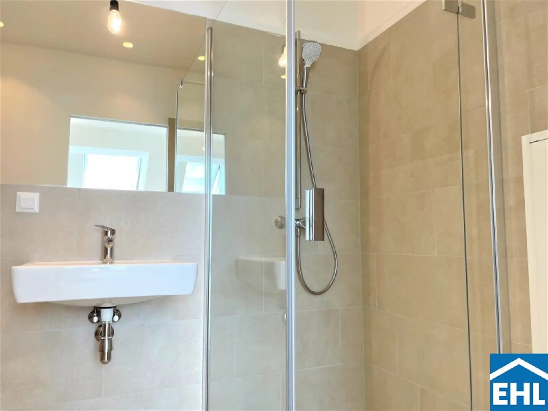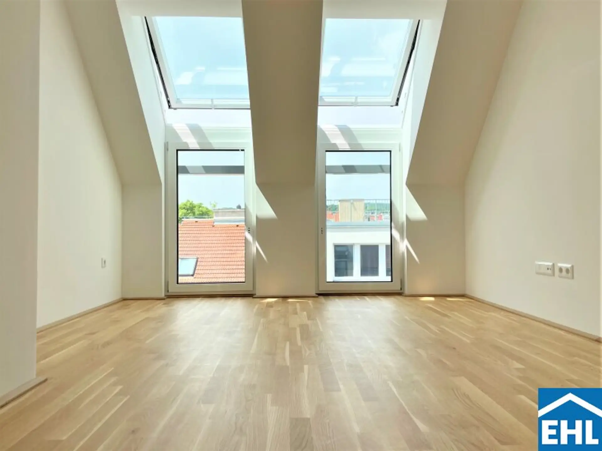 Die Wohnung selbst liegt im 1. Dachgeschoss und gliedert sich in eine Wohnküche mit einen großen Wohnraum, ein helles Schlafzimmer, ein Badezimmer mit Dusche und Waschmaschinenanschluss, eine separates WC, sowie einen Vorraum. Der Balkon rundet das Wohnerlebnis perfekt ab.