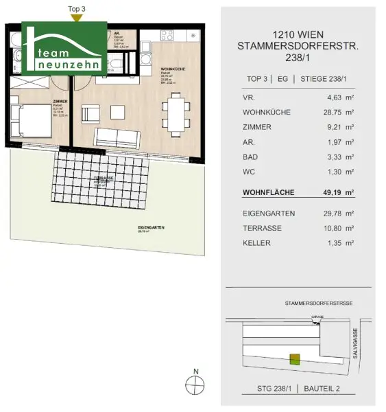 * Terrasse ca. 10,80m² & Garten ca. 29,78 m² (Süd-Ausrichtung)