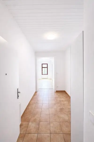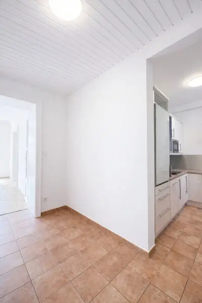Die Wohnung verfügt über ein geräumiges Wohnzimmer, das genügend Platz für eine komfortable Wohnlandschaft und einen Essbereich bietet. Das Schlafzimmer ist großzügig geschnitten und bietet ausreichend Platz für ein großes Bett und Stauraum.