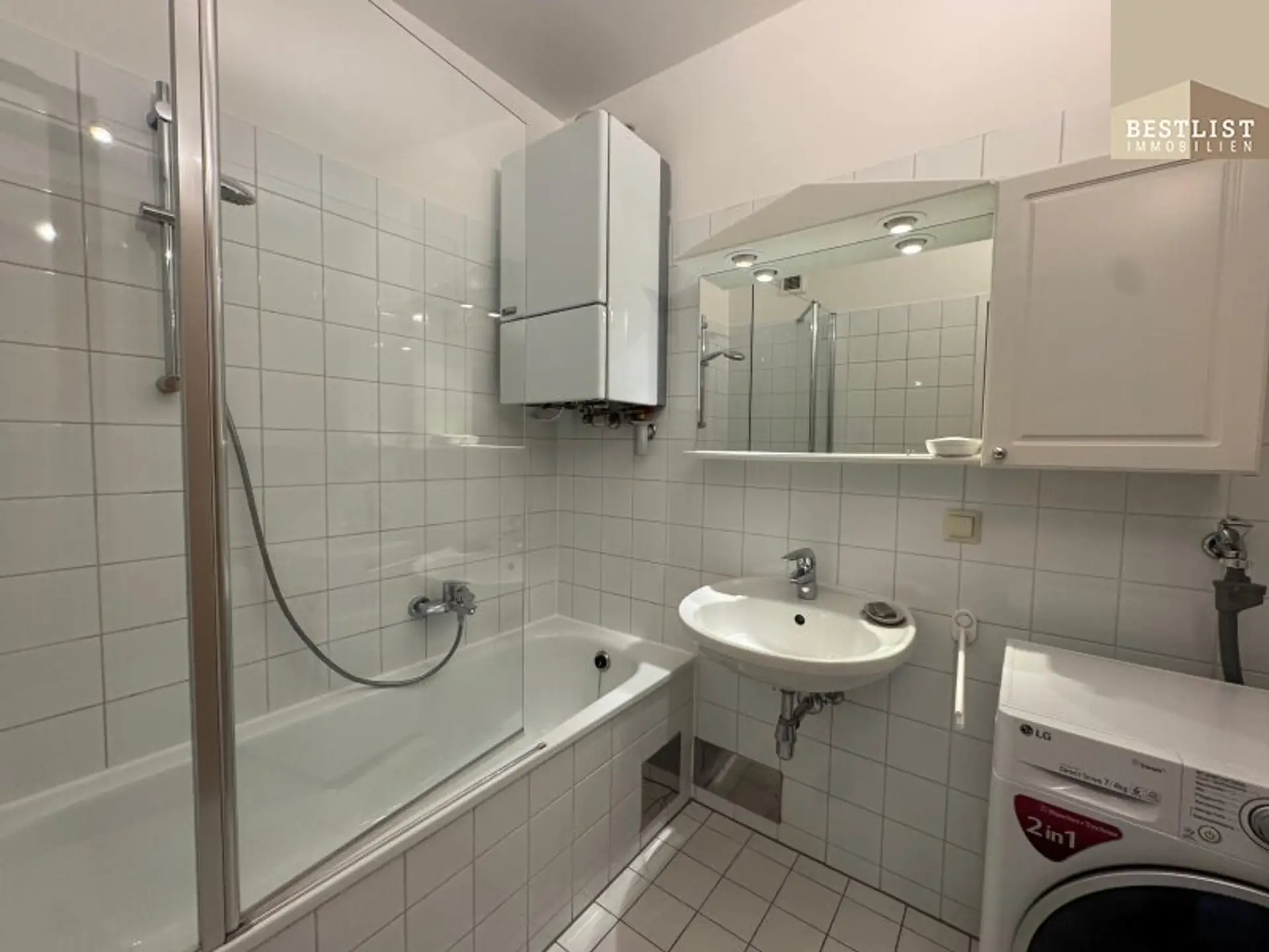 Die Wohnung verfügt über ein geschmackvoll gestaltetes Badezimmer mit Badewanne, das zum Entspannen einlädt. Eine Waschmaschine ist bereits vorhanden und sorgt für zusätzlichen Komfort im Alltag.
