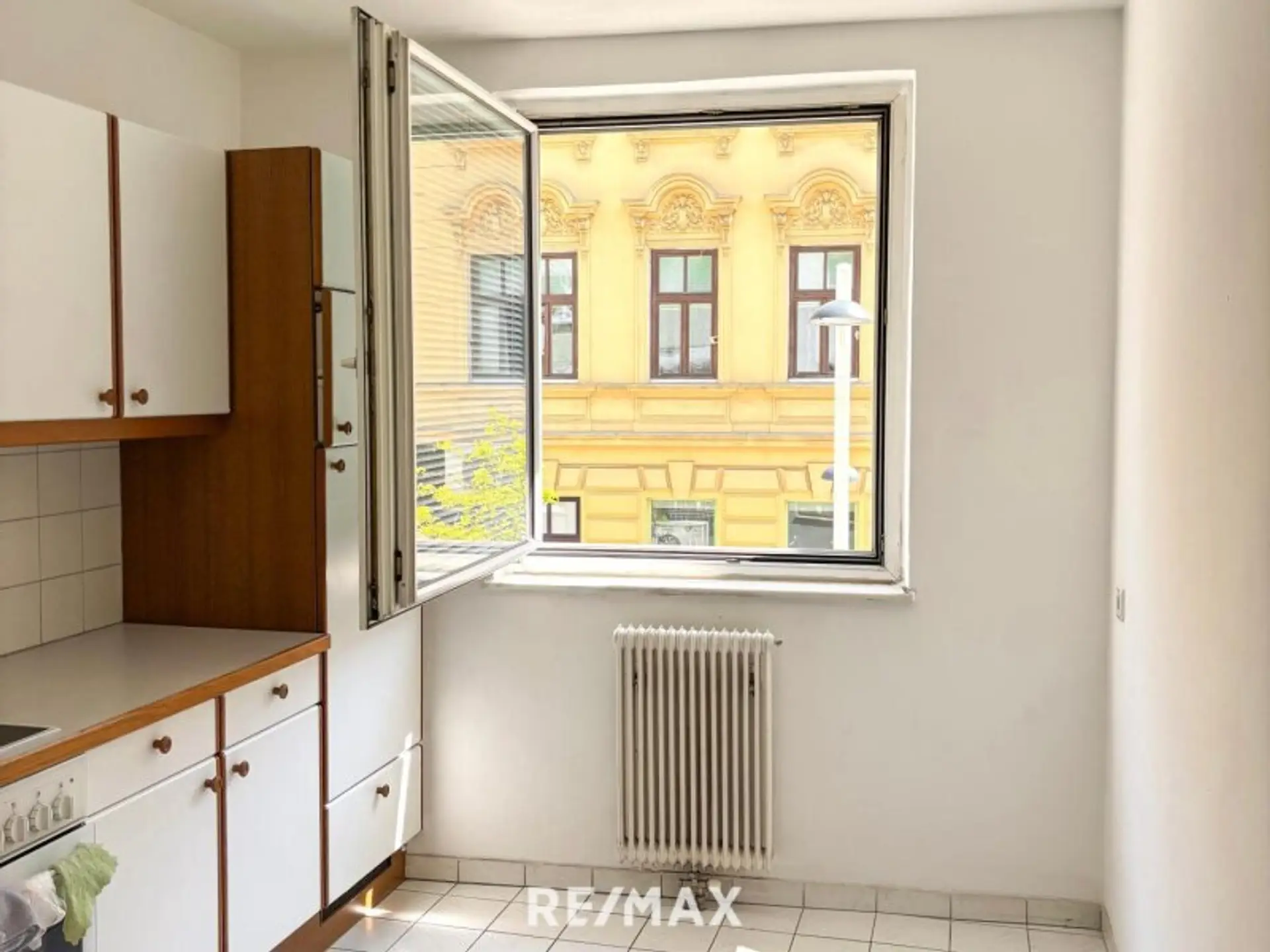 Sie verfügt über zwei großzügige Zimmer, ein Vorzimmer mit praktischen Stauraummöglichkeiten, ein separates WC sowie eine getrennt begehbare Küche mit Fenster in eine Seitengasse.