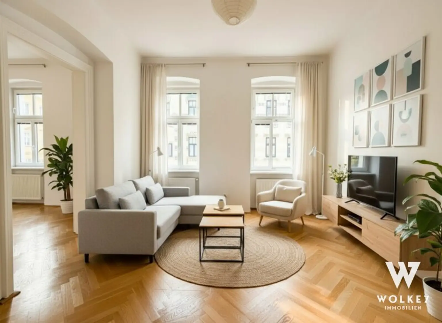 Auf rund 58 m² Wohnfläche erwarten Sie ein großzügiges Wohnzimmer, ein helles Schlafzimmer, eine separate Küche sowie ein neu saniertes, modernes Badezimmer mit Dusche und WC. Edle Parkettböden, stilvolle Fliesen und die helle Gestaltung schaffen eine einladende Wohnatmosphäre.