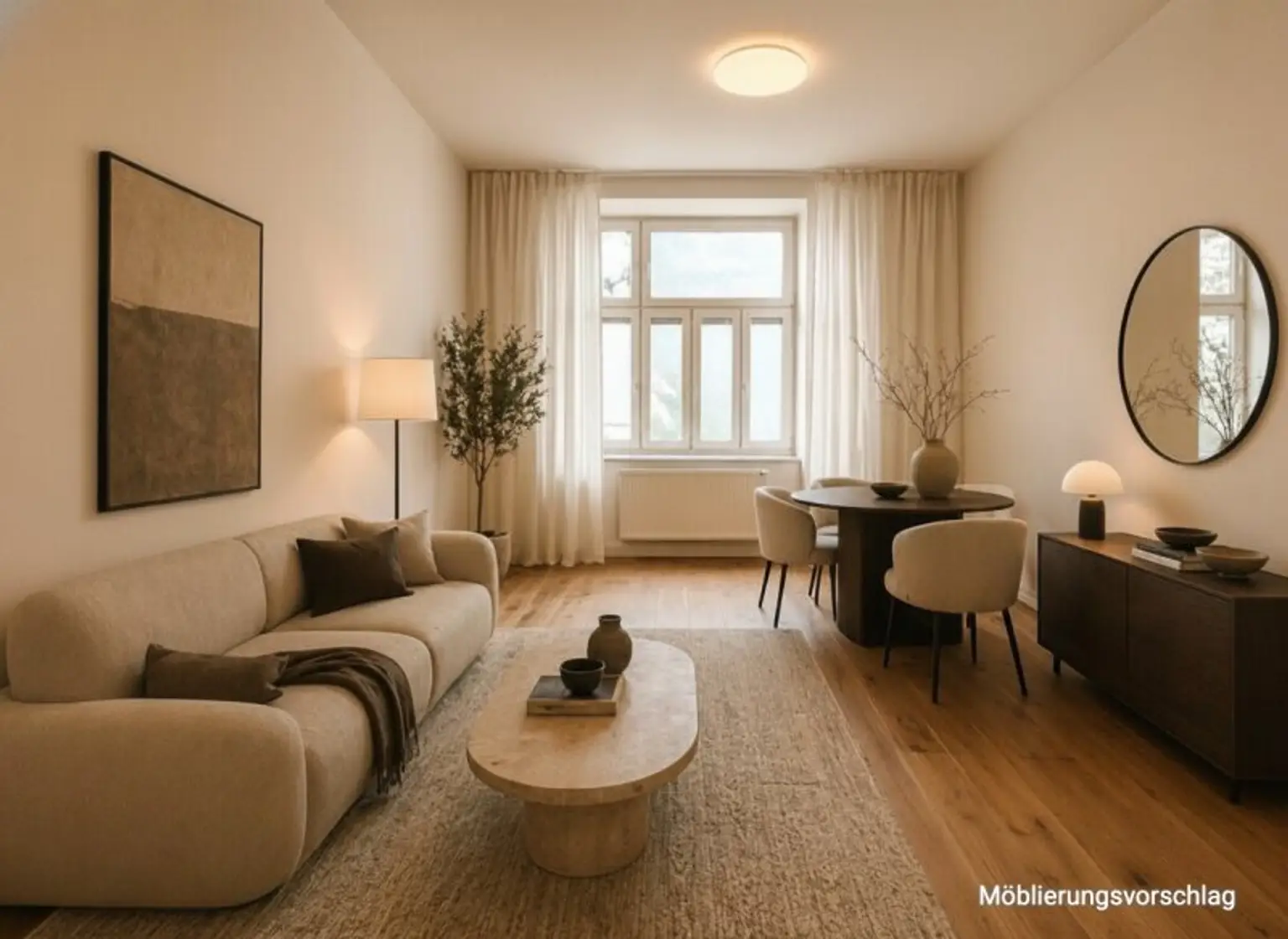 Die Wohnung besticht durch einen durchdachten Grundriss, der Privatsphäre und geselliges Wohnen perfekt trennt: