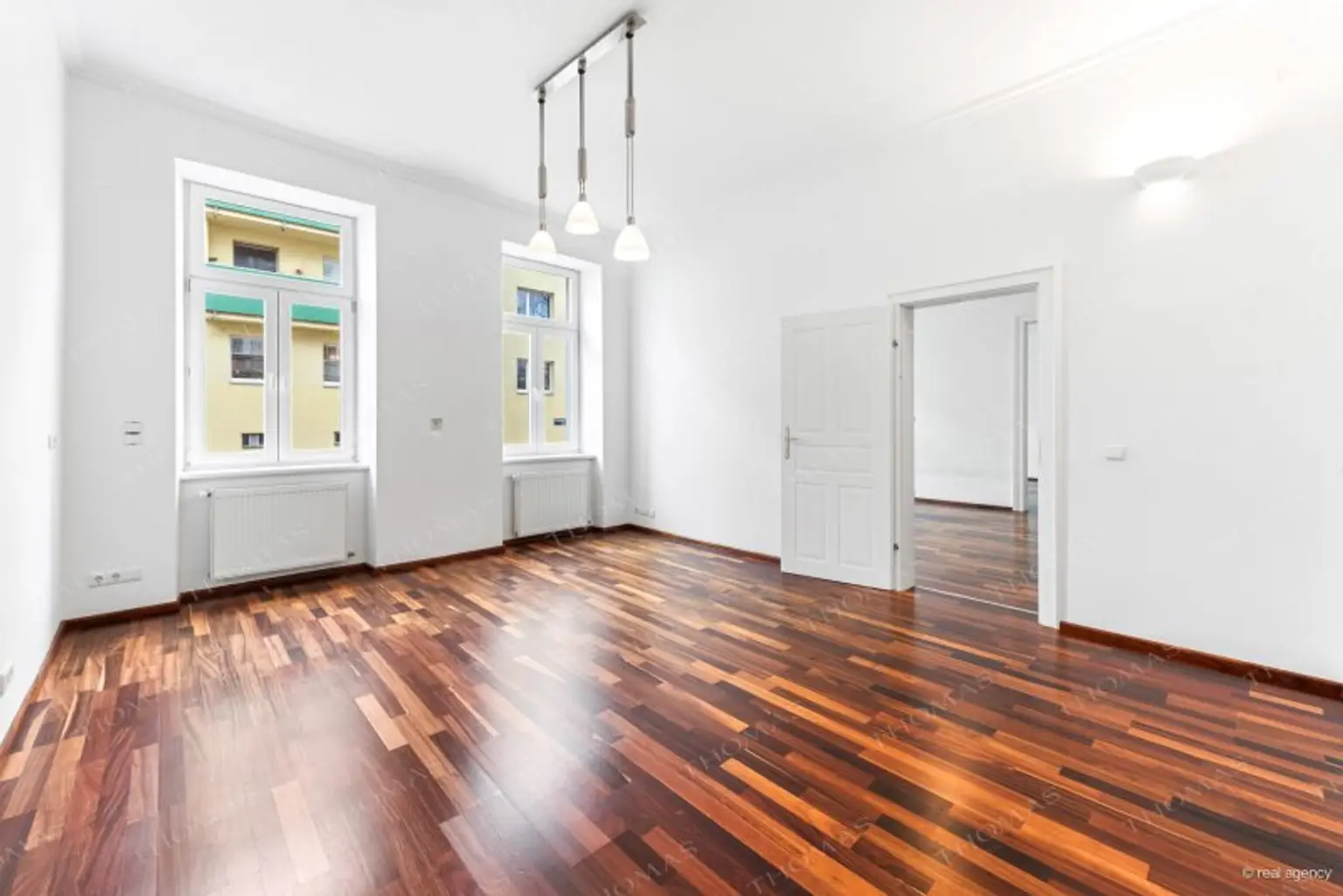 * Modern windows & wooden flooring