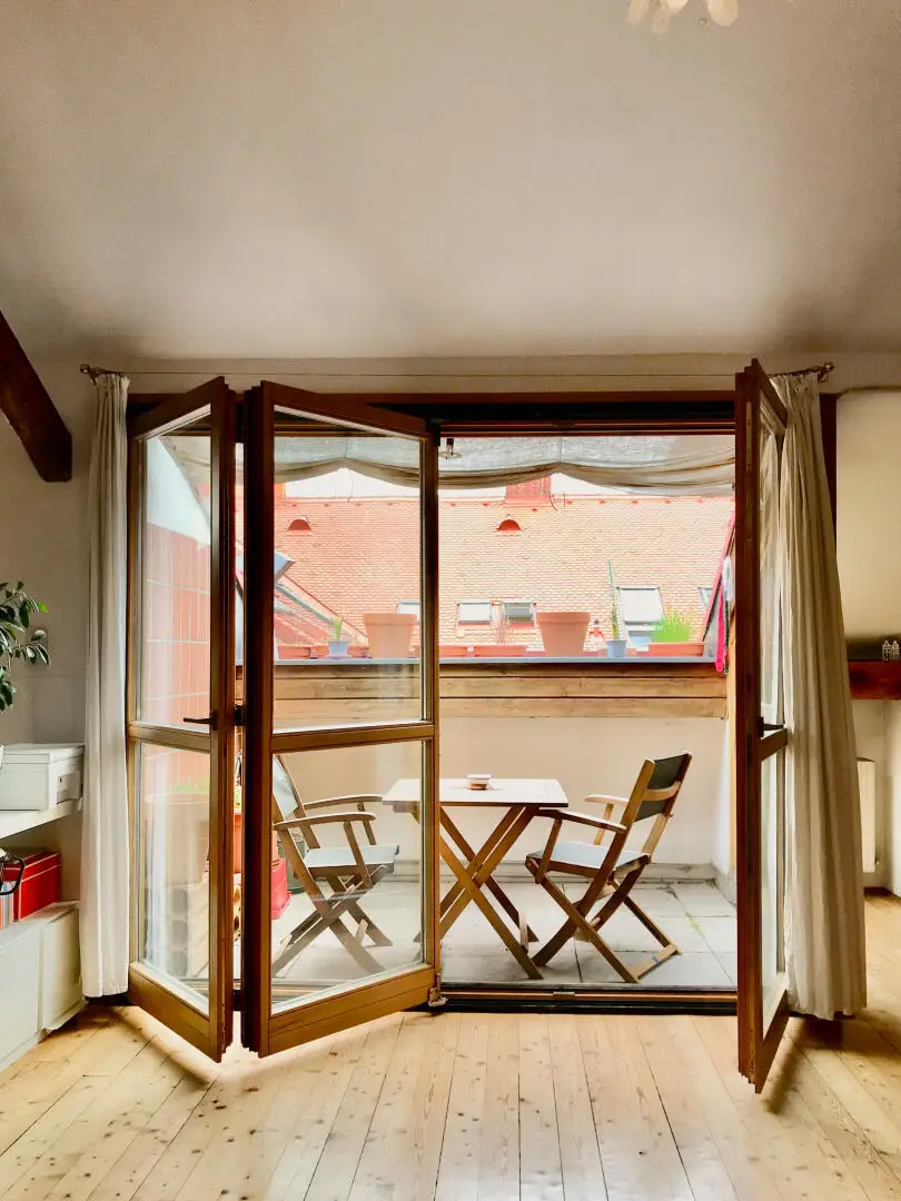 gemütliche Loggia mit Blick über die Dächer der Grazer Innenstadt.