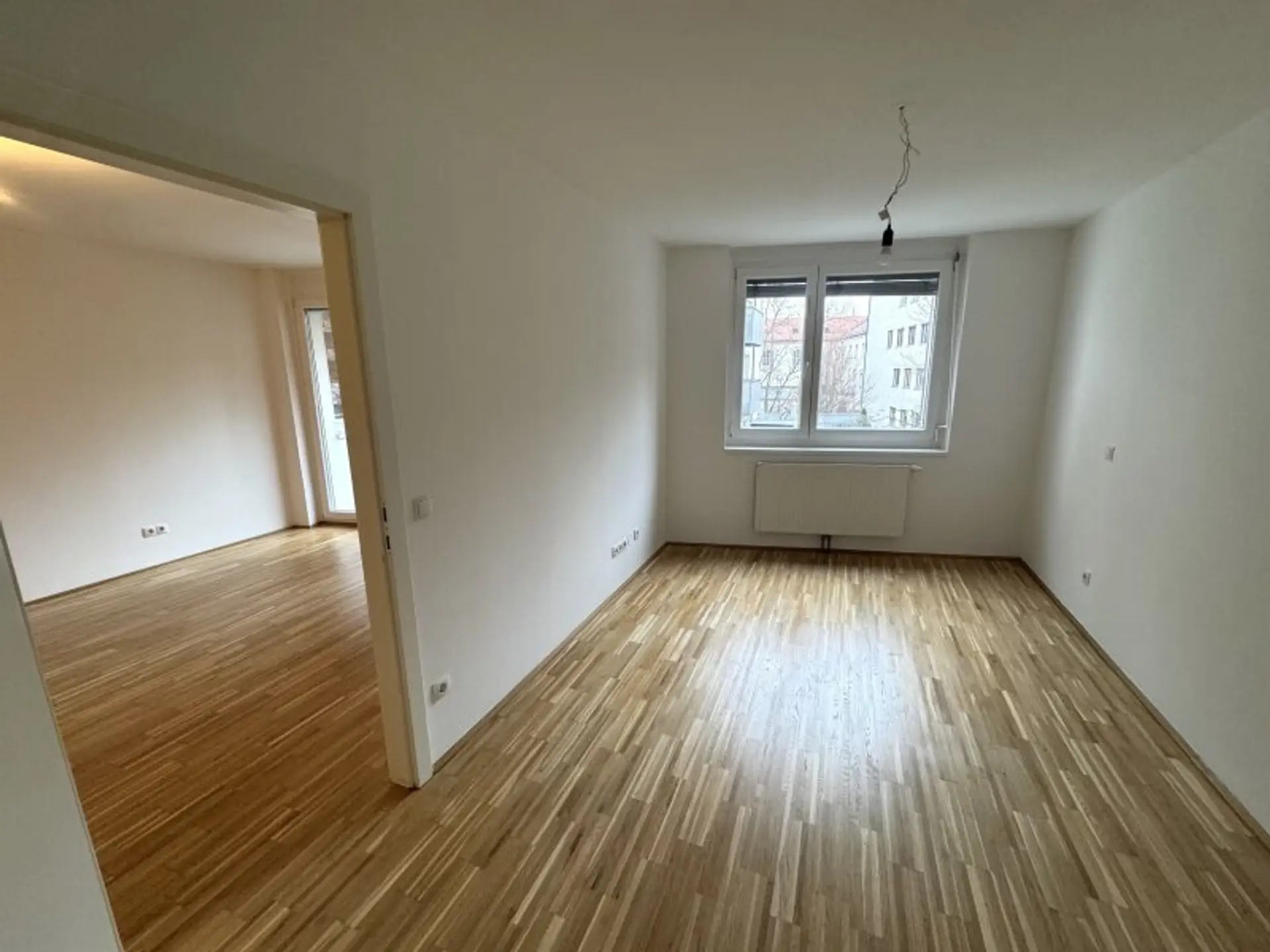 Die Wohnung verfügt über eine Wohnküche, ein Badezimmer mit Badewanne, ein separates WC sowie zwei weitere Zimmer, die sich flexibel als Schlaf-, Kinder- oder Arbeitszimmer nutzen lassen.
