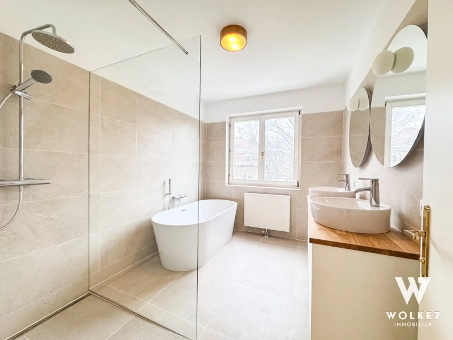 Ein modernes Badezimmer mit freistehender Badewanne und Dusche, ein separates WC, ein praktischer Abstellraum sowie ein ca. 6 m² großes Kellerabteil runden dieses attraktive Wohnangebot ab.