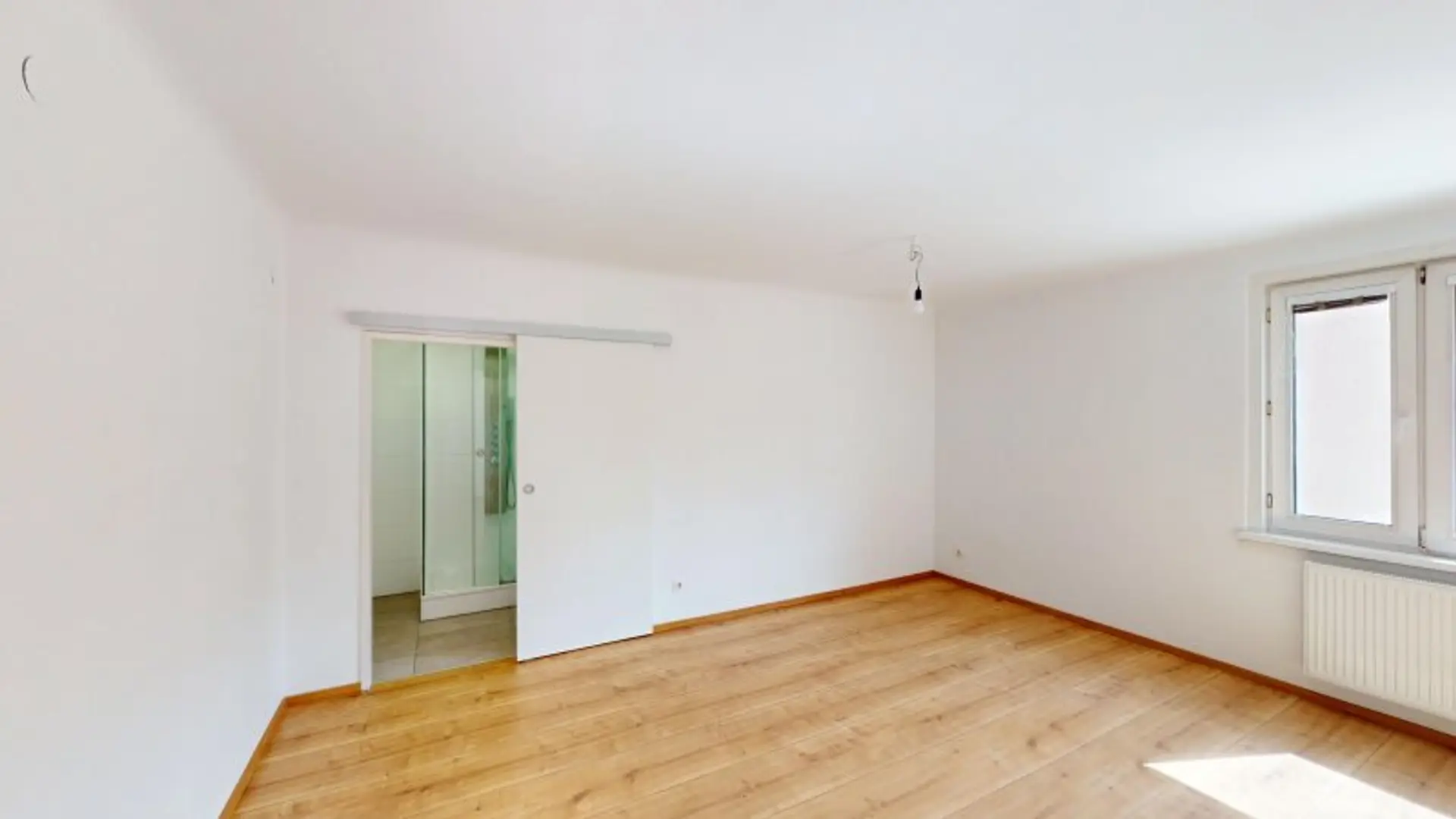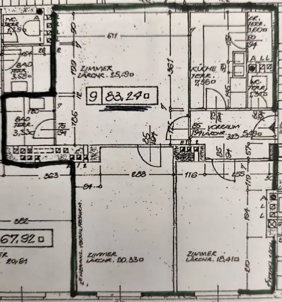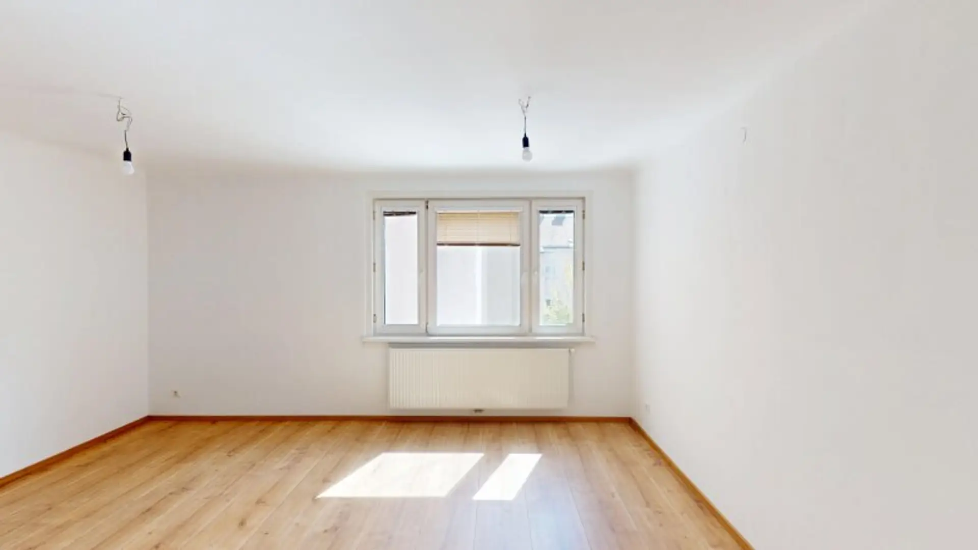 Bereits beim Betreten der Wohnung fällt der gut geschnittene Vorraum (ca. 5,4 m²) auf, der alle Räume zentral erschließt und eine angenehme Wohnstruktur ohne Durchgangszimmer schafft. Das Herzstück der Wohnung bildet das helle Wohnzimmer mit ca. 25,9 m², das durch große Fensterflächen mit Tageslicht durchflutet wird und ausreichend Platz für Wohnen und Essen bietet.