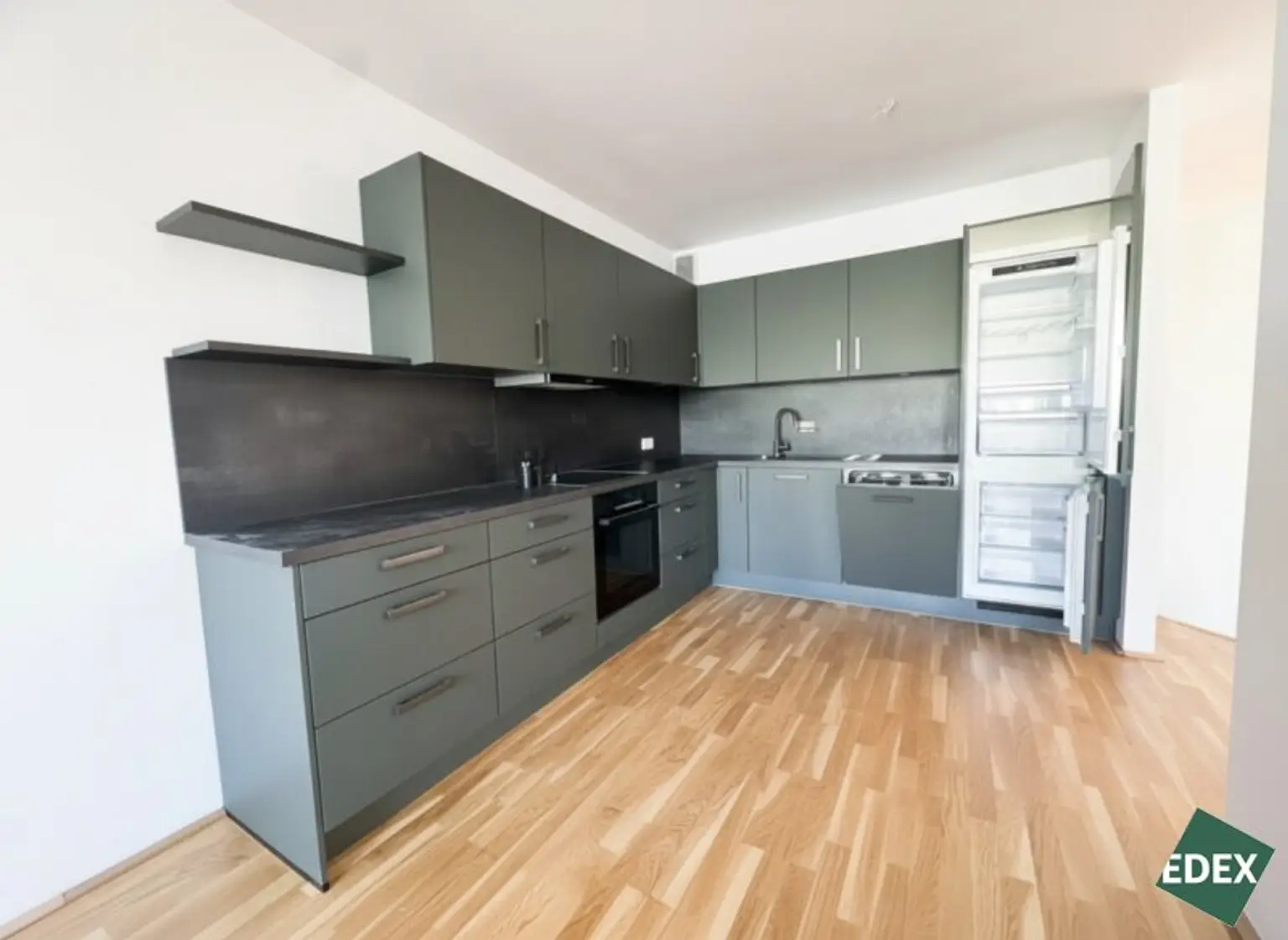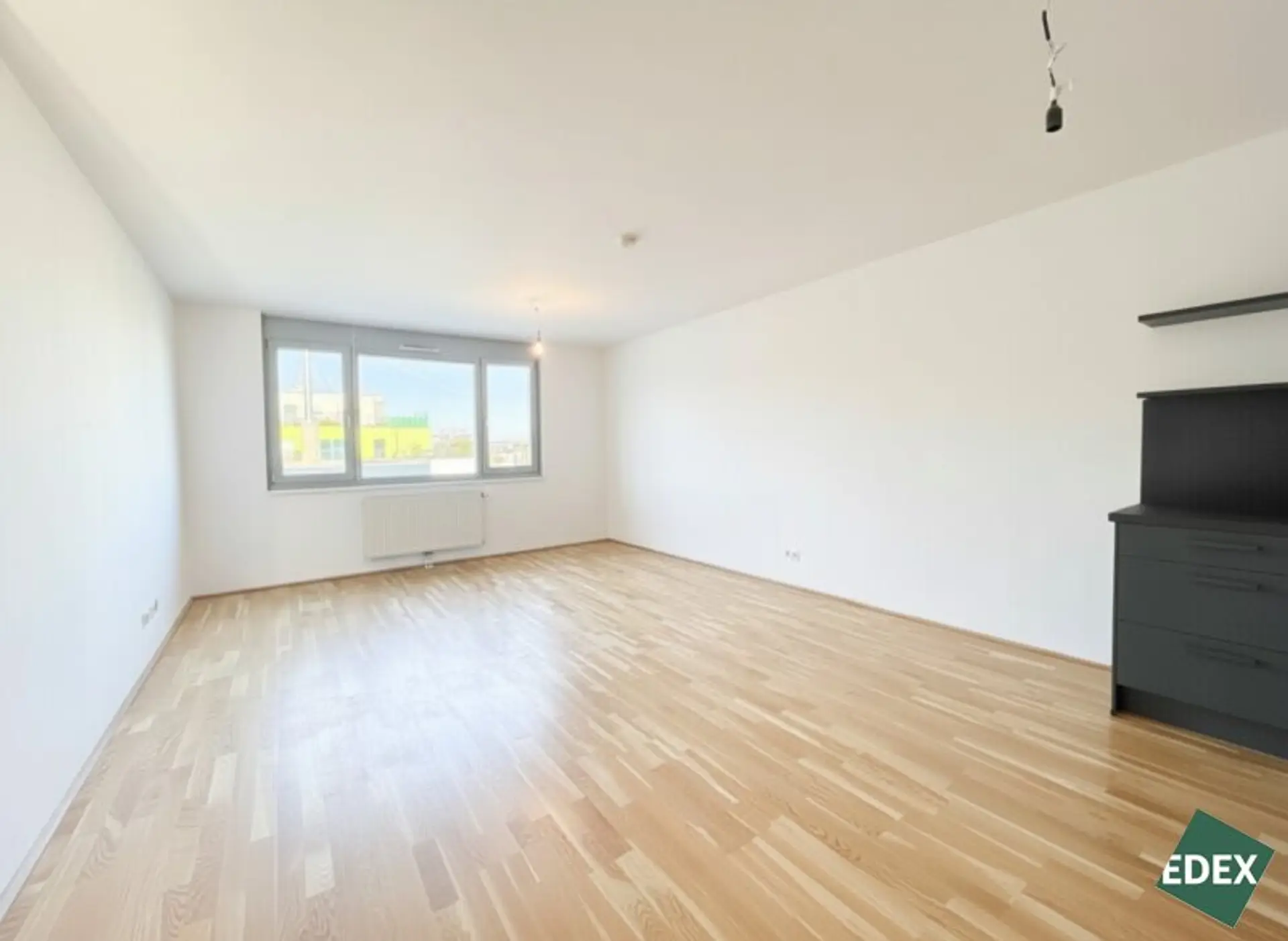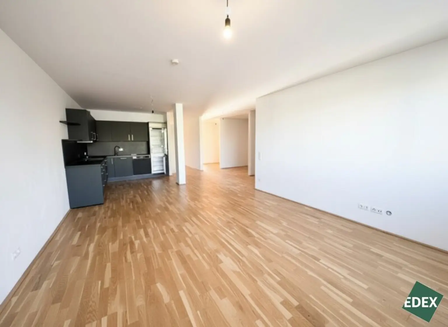 Der helle Wohnraum mit offener Kochnische bildet das Herzstück der Wohnung und bietet ausreichend Platz für Wohn- und Essbereich. Die Küche ist als Kochnische ausgeführt und funktional in den Wohnraum integriert.