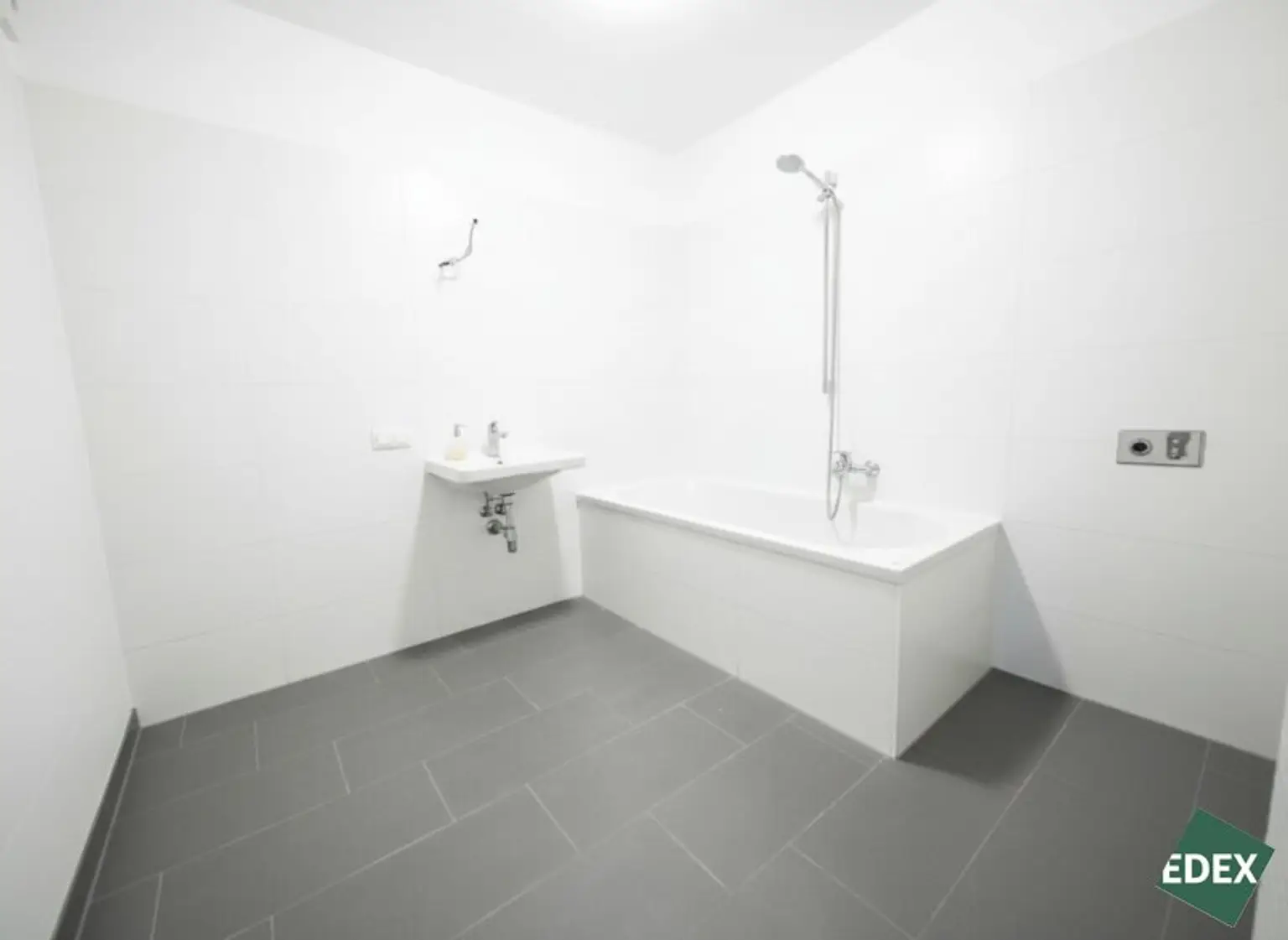 Beim Betreten der Wohnung gelangt man in einen zentralen Vorraum, von dem aus sämtliche Räume bequem erreichbar sind. Ein separates WC sowie das Badezimmer mit Badewanne, Waschbecken und Waschmaschinenanschluss sind funktional voneinander getrennt.