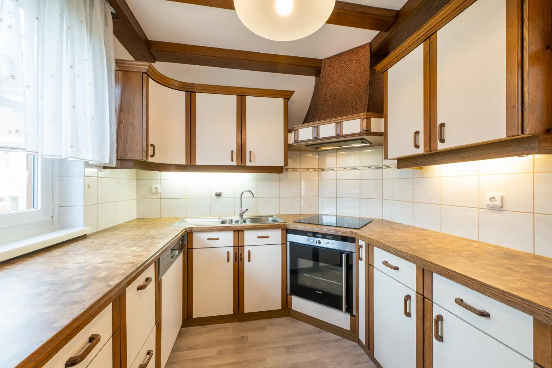 Die Küche lädt zum gemeinsamen Kochen und Genießen ein und bietet ausreichenden Stauraum. Drei weitere Zimmer sind vielseitig nutzbar als Schlafzimmer, Kinderzimmer oder Homeoffice und bieten Rückzugsmöglichkeiten und Ruhe für eine erholsame Nacht.