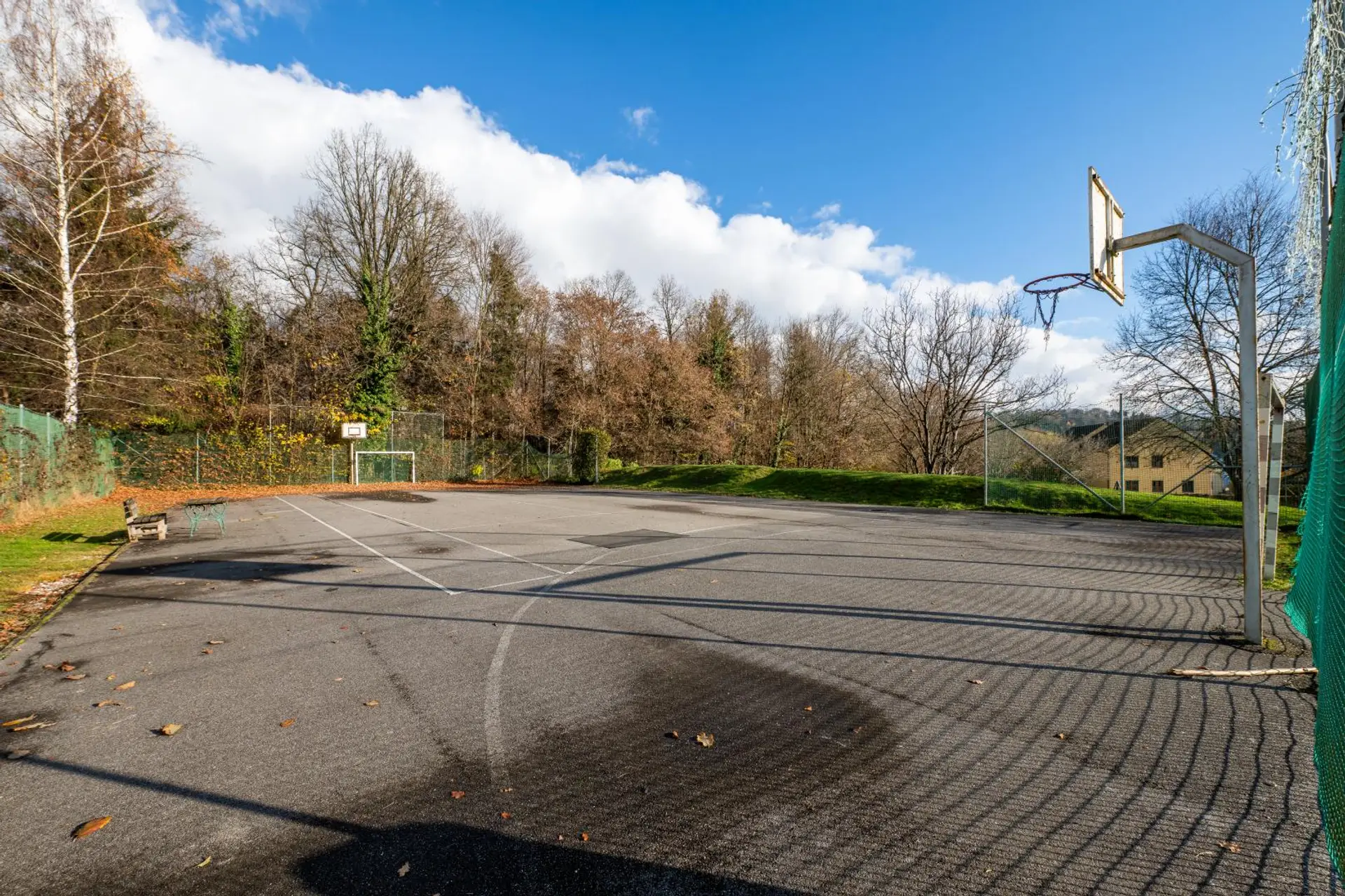 Die Wohnanlage präsentiert sich in einem gepflegten Zustand, umgeben von großzügigen Grünflächen. Eine ruhige Wohnqualität und zahlreiche Spiel- und Sportmöglichkeiten machen sie besonders familienfreundlich. Es gibt einen wunderschönen Spielplatz, einen großen Sportplatz und ein eingezäuntes Areal mit zugeordneten ca. 50m² großen Kleingärten - ideal für Hobbygärtner.