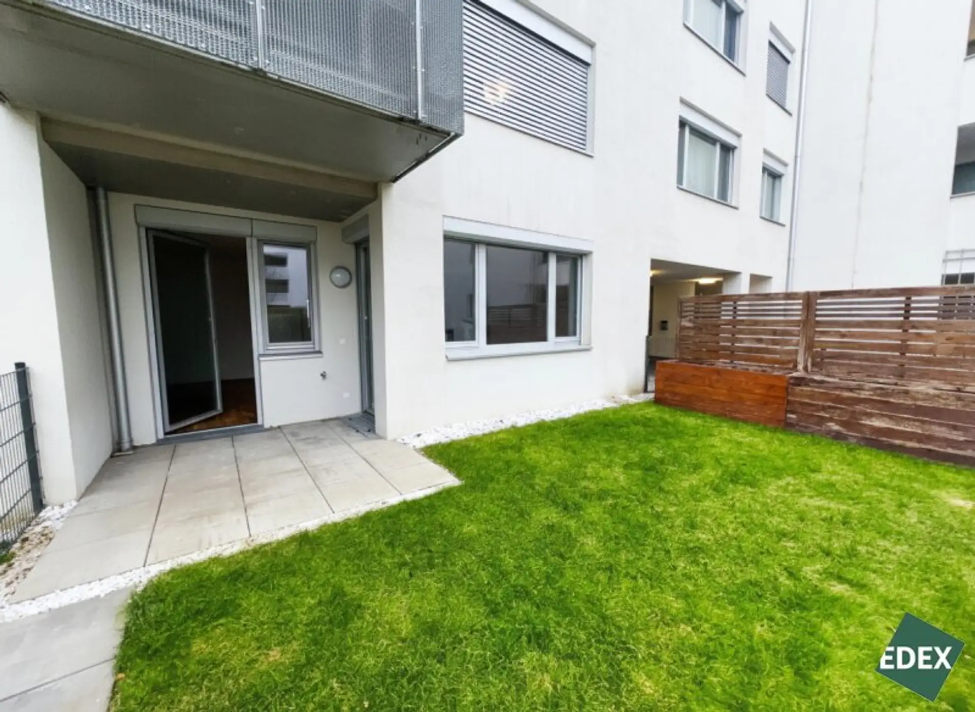 Vom Wohnbereich aus gelangt man direkt auf die Terrasse/Loggia mit ca. 11,52 m², die in den Eigengarten mit rund 32,05 m² übergeht – ein großzügiger Außenbereich, der zum Entspannen und Verweilen im Freien einlädt.
