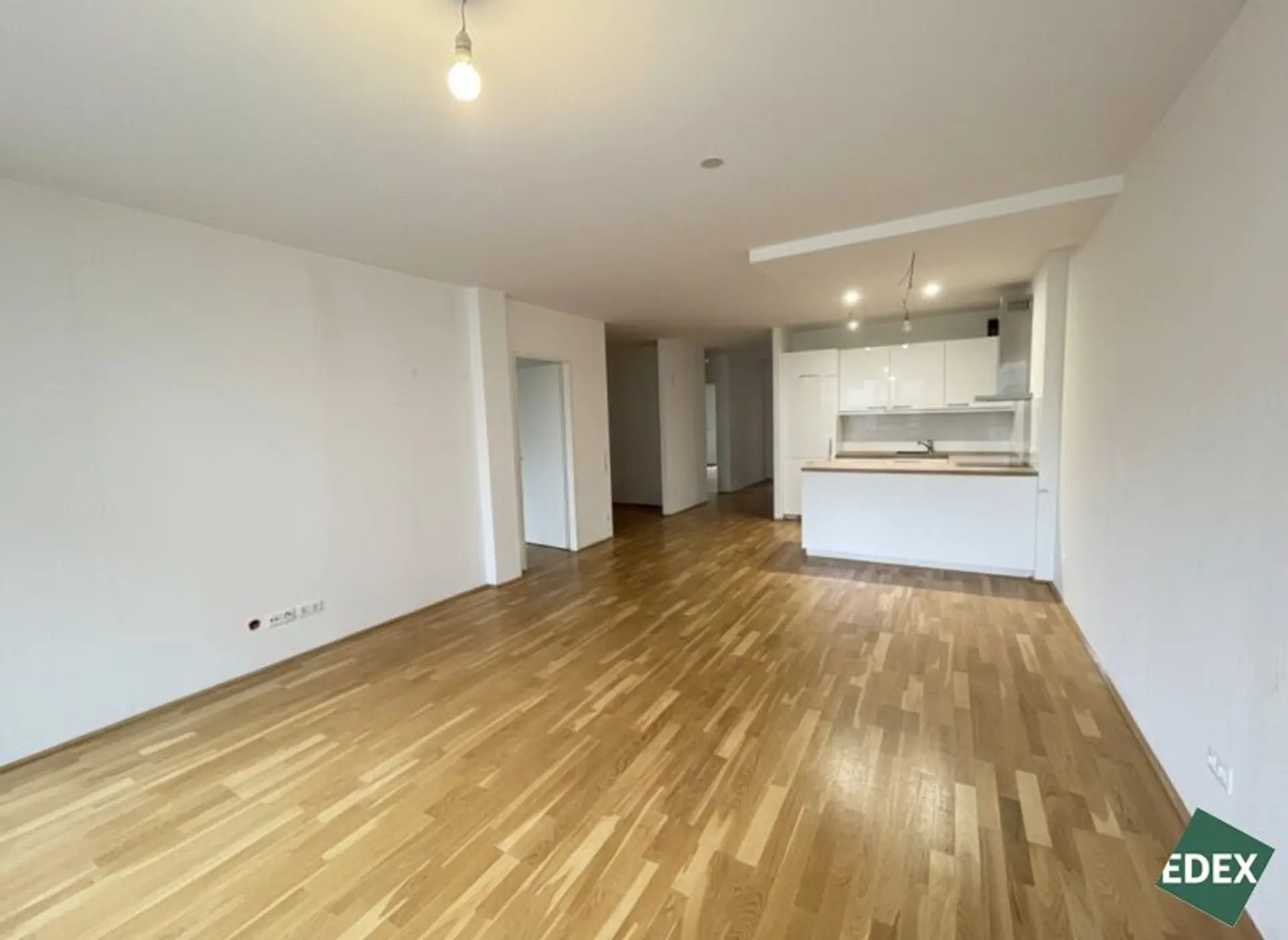 Der großzügige Wohn-/Essbereich mit offener Küche bildet das Herzstück der Wohnung und überzeugt durch seine Helligkeit sowie die gute Raumaufteilung. Die Einbauküche ist derzeit noch nicht installiert, wird jedoch vollständig ausgestattet und umfasst: