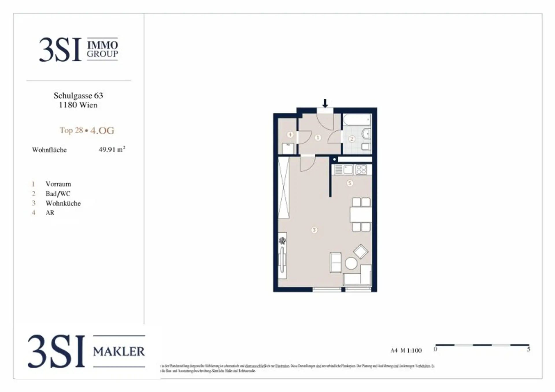 Zum Verkauf gelangt eine geräumige Single-Wohnung in einem gepflegten Neubau in Top-Lage des 18. Bezirks. Sie verfügt über ca. 50 m² Wohnfläche und teilt sich wie folgt auf: