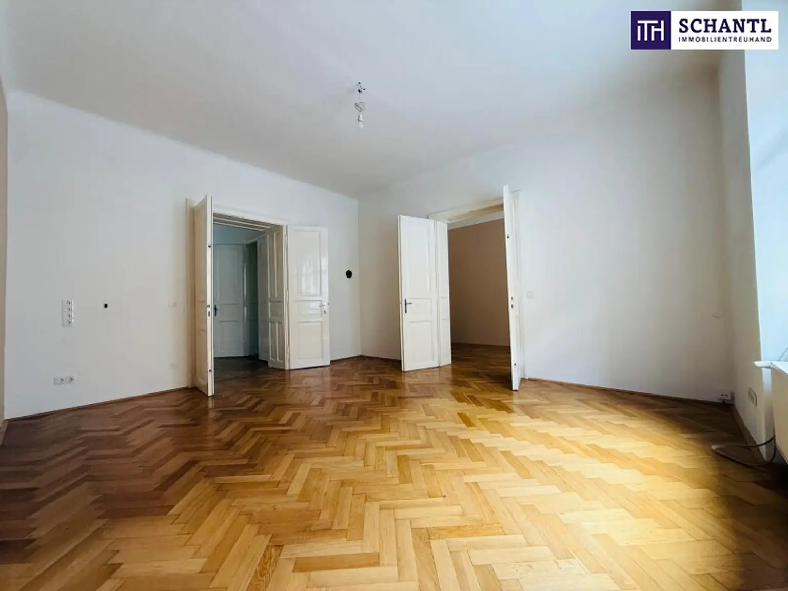Authentischer Altbaucharakter: Fischgrätparkett, hohe Räumen und elegante Doppelflügeltüren.