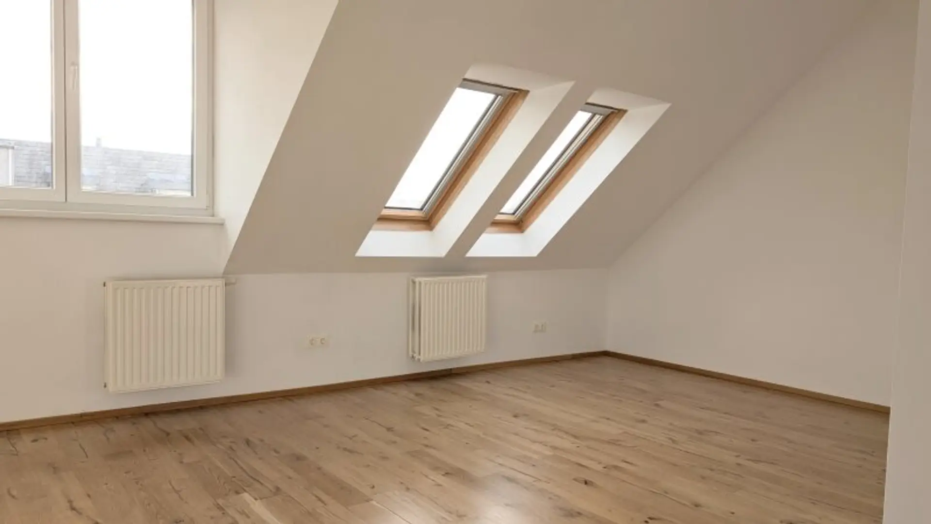 Diese charmante Dachgeschoßwohnung besticht durch ihre besonders helle und freundliche Atmosphäre dank mehrerer Dachflächenfenster und großem Gauben-Fenster. Der clevere Grundriss umfasst: