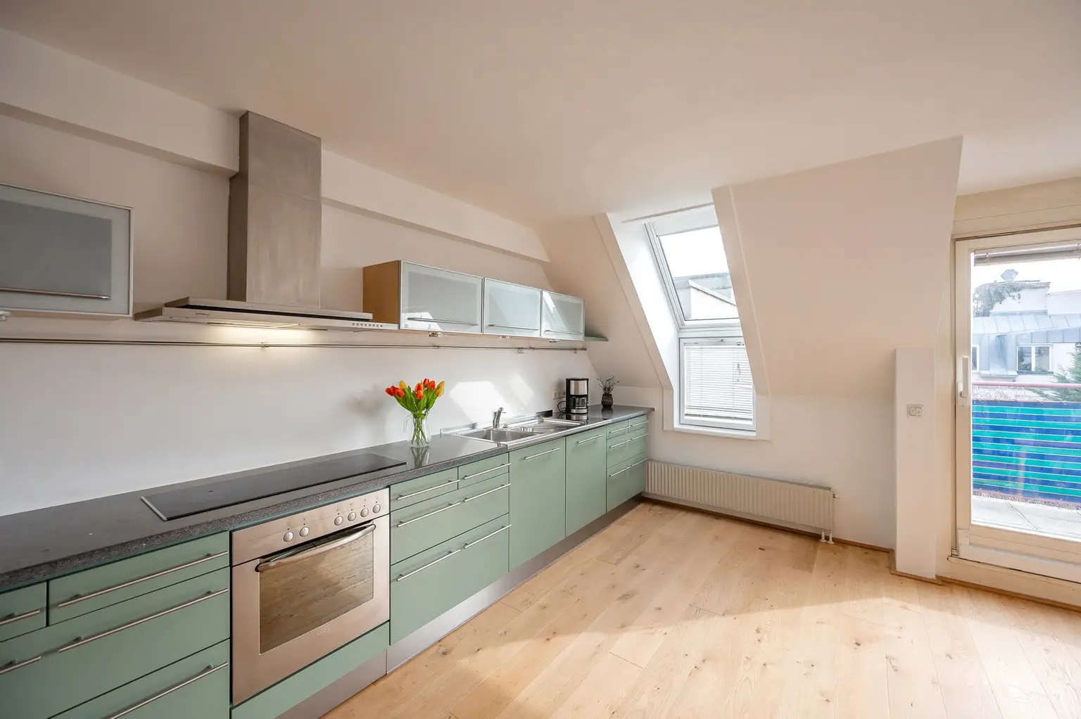 Diese Immobilie bietet Ihnen ein angenehmes Wohngefühl. Vom gemütlichen Wohnzimmer gelangen Sie auf den gut geschnittenen, großen Balkon. Von der schönen Tischler-Küche wurde erst letztes Jahr der untere Korpus und alle Fronten erneuert. Im Zuge dessen wurden ein neuer Geschirrspüler und eine Liebherr Kühl- Gefrierkombi angeschafft. Die Arbeitsplatte besteht aus Granit.