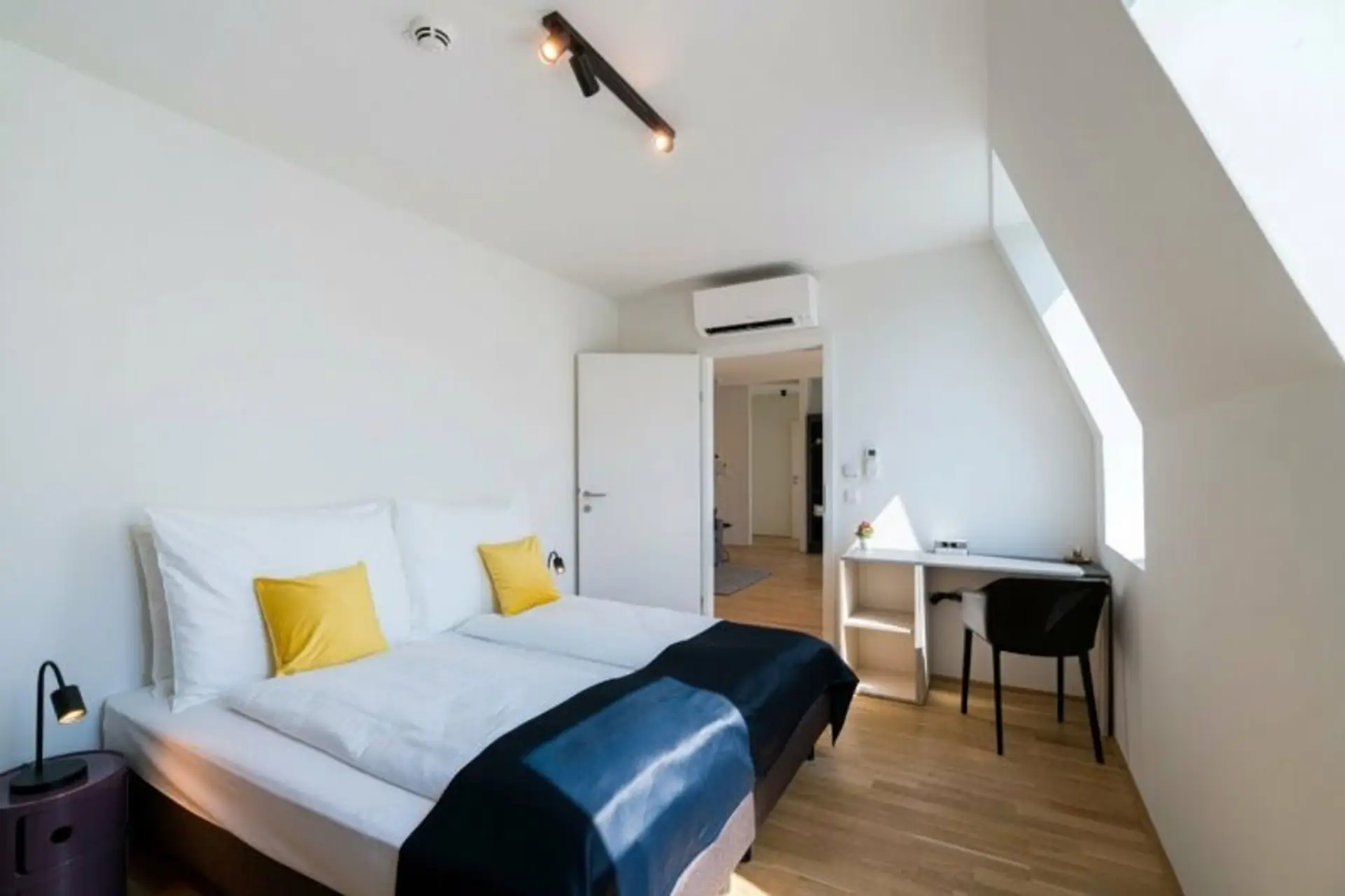 Angrenzend befindet sich das gemütliche Schlafzimmer. Abgerundet wird das Angebot durch ein geräumiges, modernes Badezimmer, sowie ein separates WC.
