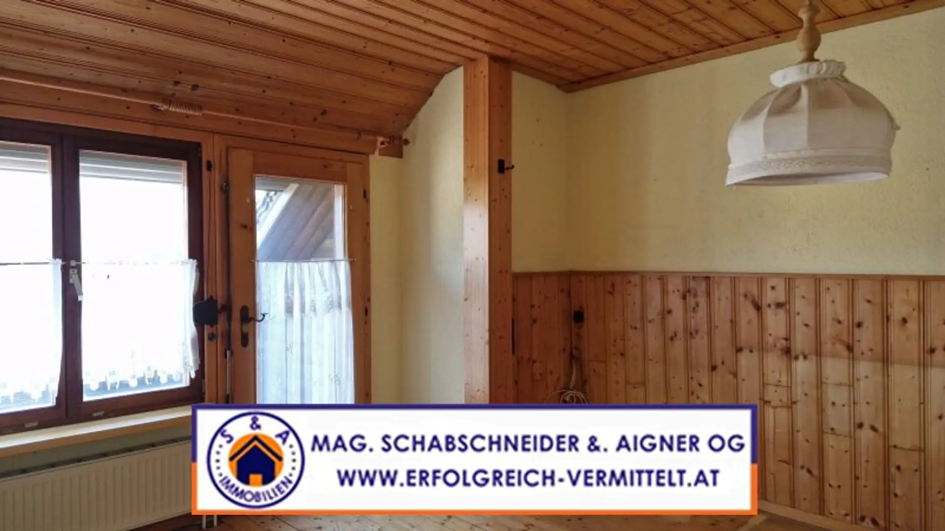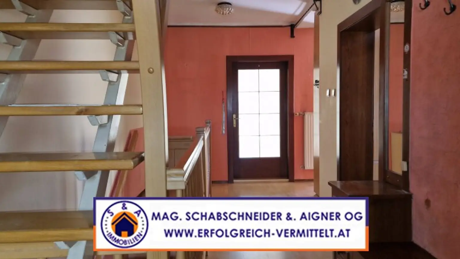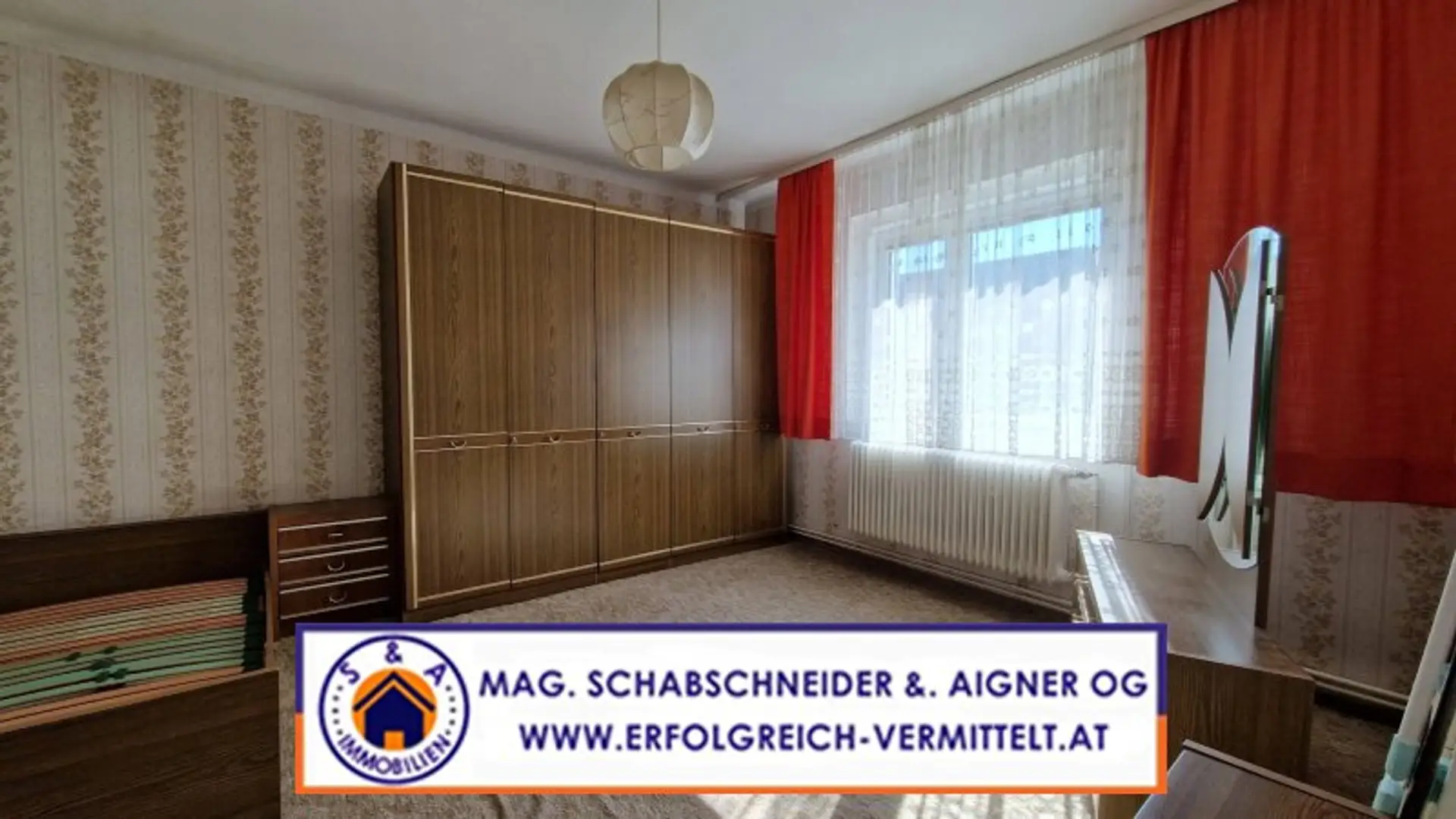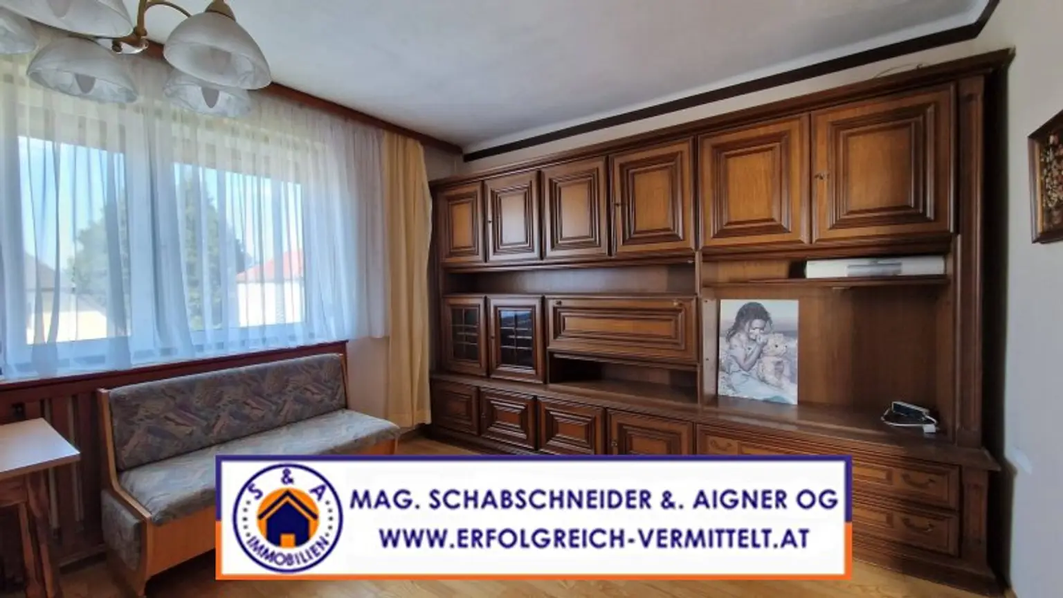 Erdgeschoss: Vorzimmer, Speisezimmer, Küche, Bad m. WC, Schlafzimmer, Kinderzimmer, kl. Abstellraum