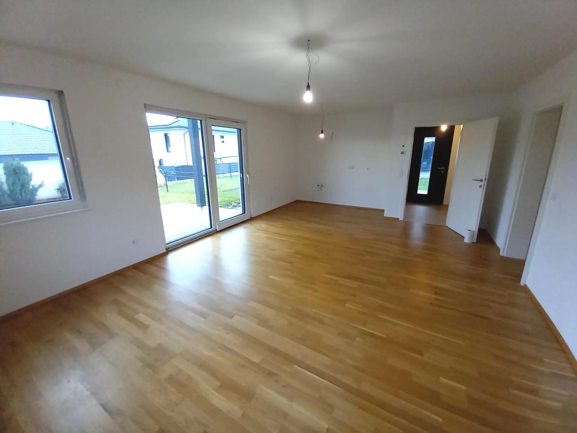 In einem 2020 errichteten Holzriegelwohnhaus der Firma Elk, präsentiert sich diese elegante Erdgeschosswohnung als harmonische Verbindung aus moderner Architektur, nachhaltiger Bauweise und zeitgemäßem Wohnkomfort.