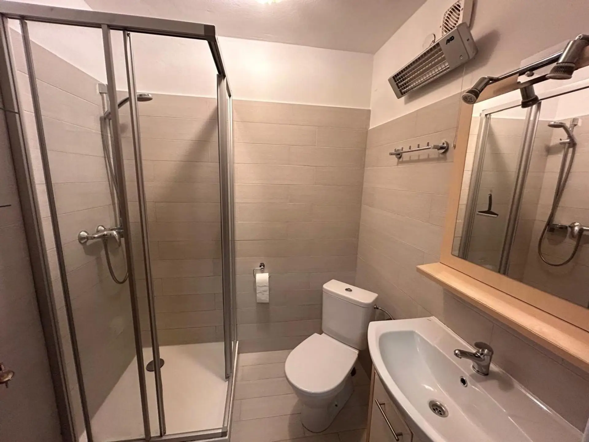 The spacious living area with a comfortable sleeping niche creates a pleasant and inviting atmosphere. A separate kitchen, a bathroom with shower and WC, an entrance hall, and a balcony with breathtaking views of the surrounding mountains complete the layout perfectly. A practical cellar storage unit is also included.