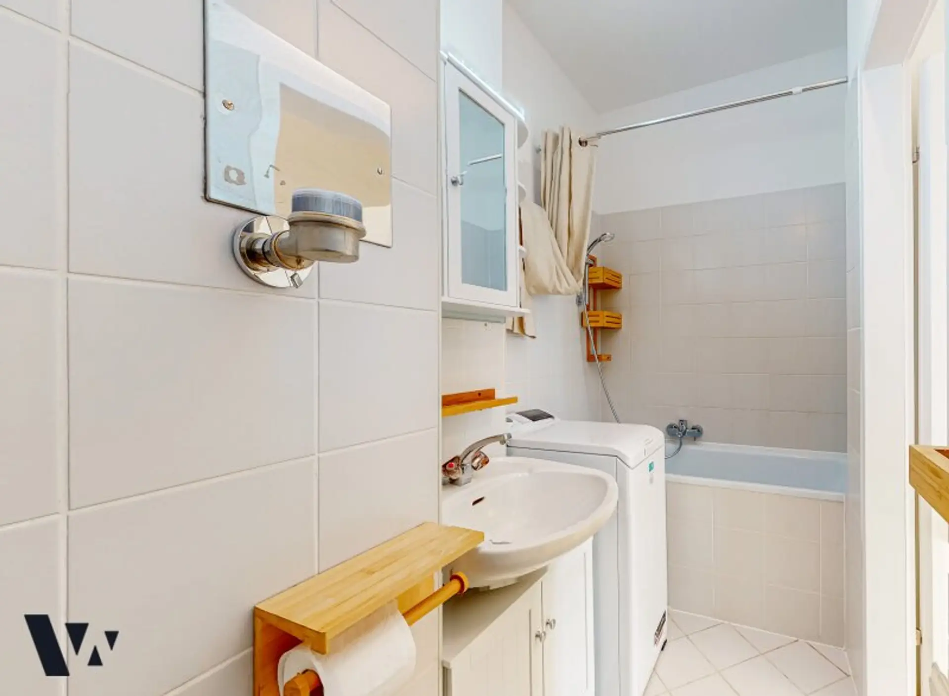 Inmitten einer der begehrtesten Wohngegenden Wiens befindet sich diese Wohnung in einem gepflegten Neubau. Auf rund 41 m² Wohnfläche überzeugt sie mit einer flexiblen Raumaufteilung: Vorraum, Bad, separate Küche sowie ein großzügiger Wohn- und Schlafbereich. Dieser bietet einen herrlichen Blick ins Grüne und kann bei Bedarf unkompliziert in zwei gleich große Zimmer geteilt werden - ideal für Singles, Studenten, Paare oder eine kleine WG. Das Angebot wird ergänzt durch einen eigenen Tiefgaragen-Stellplatz und ein ca. 9 m² großes Kellerabteil, das sich aufgrund des sehr guten Zustands auch perfekt als Hobbyraum nutzen lässt. Besonders charmant ist außerdem der Hauseingang, der dank Verkehrsberuhigung eine ruhige und grüne Atmosphäre bietet.