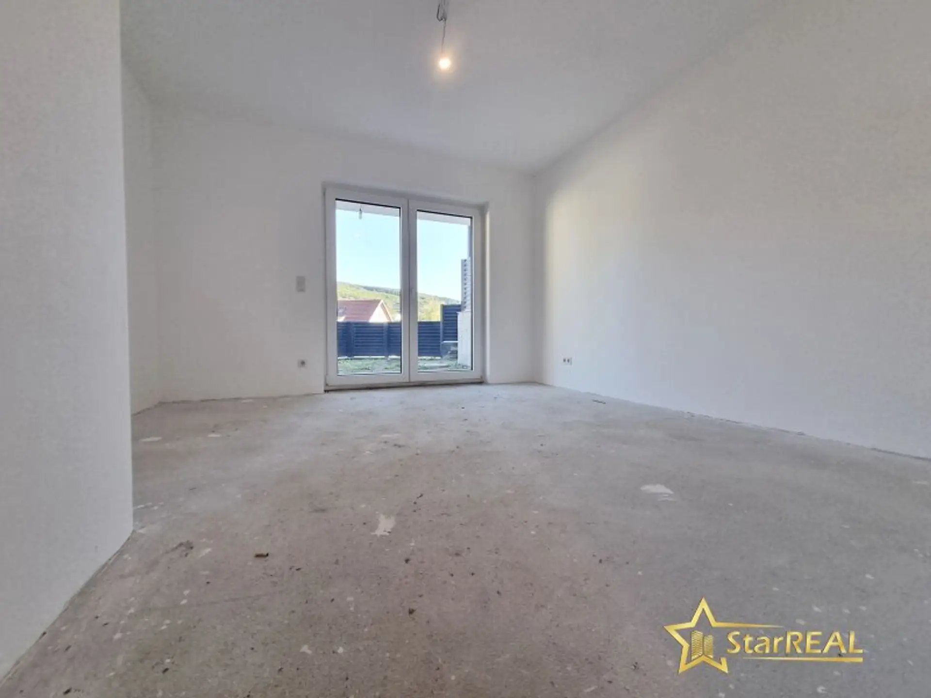 Erdgeschoss: Vorraum, WC, großzügiger Wohn-Ess-Küchenbereich, Balkon, Vorgarten, 2 Stellplätze