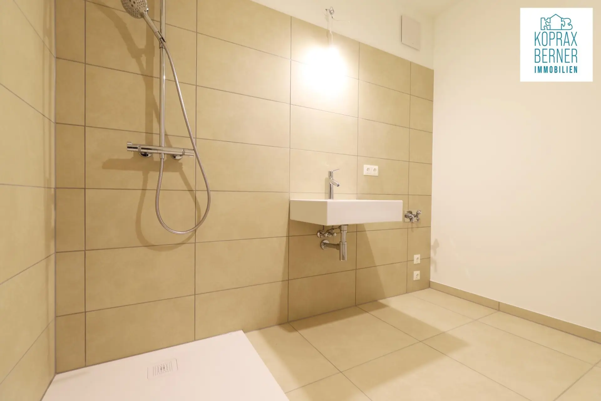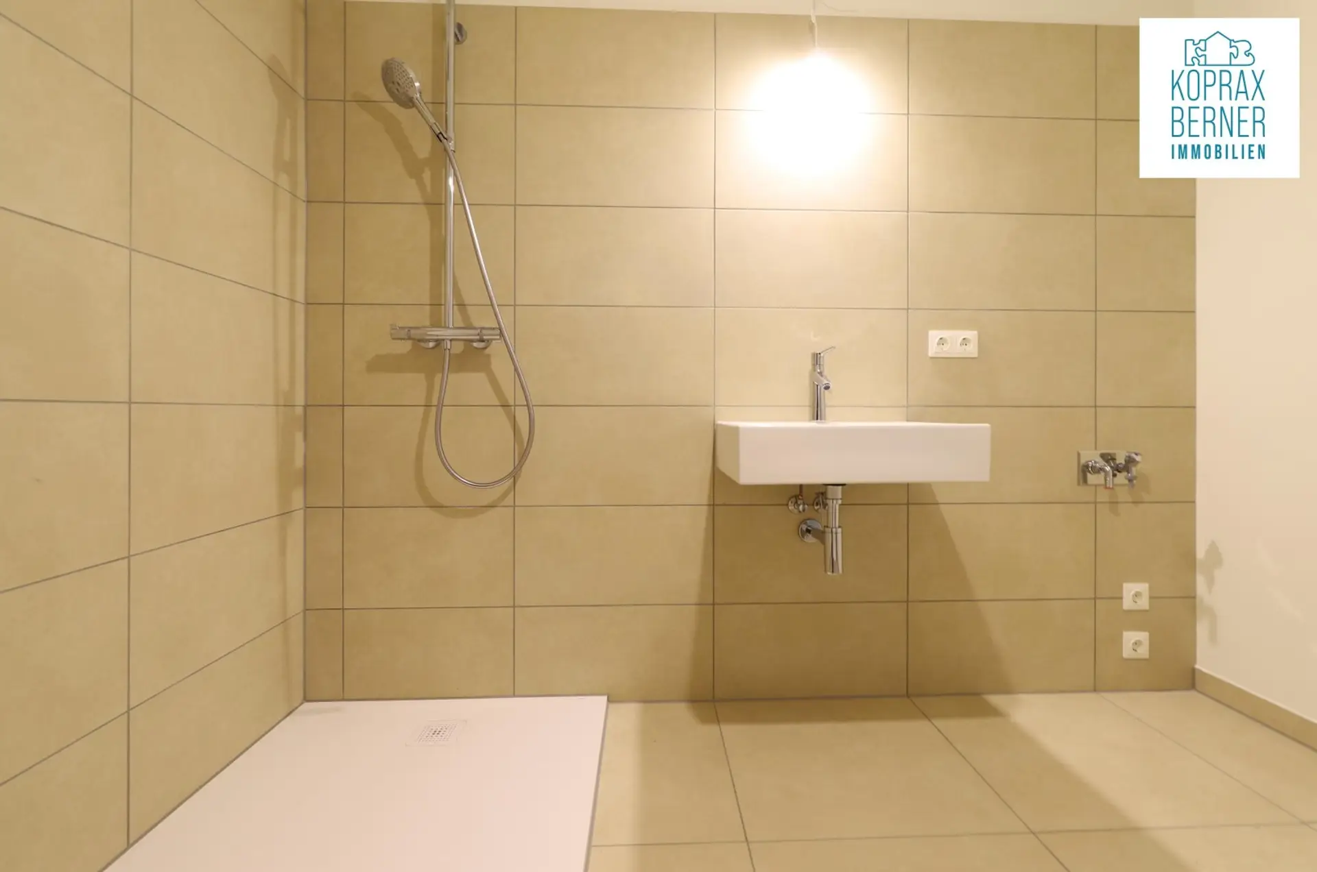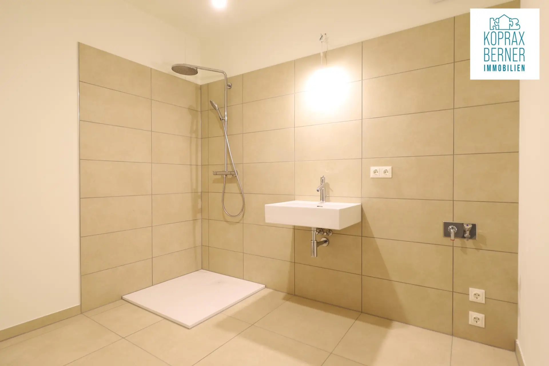 - Hochwertige Feinsteinzeug-Fliesen in Bad und WC.