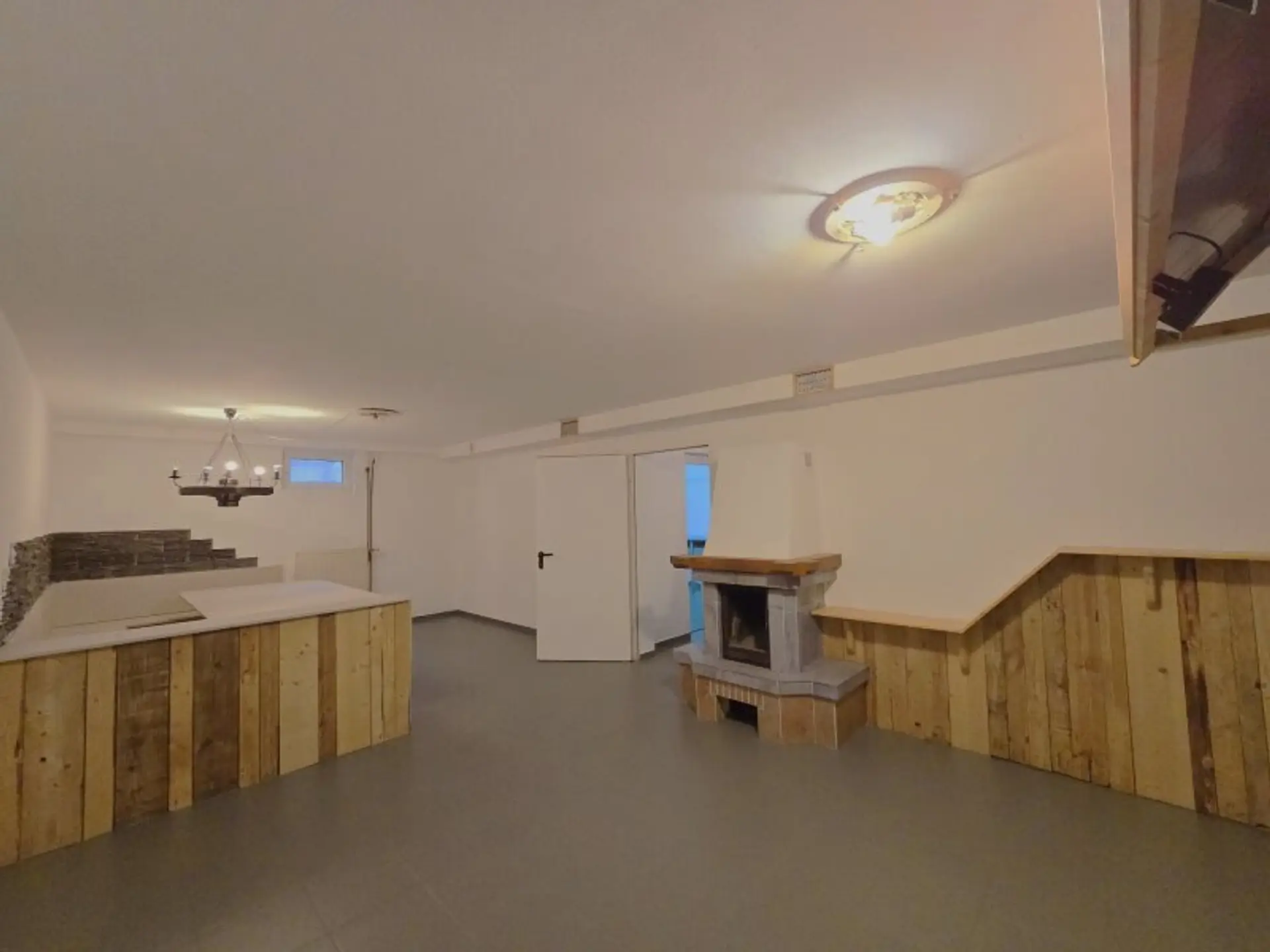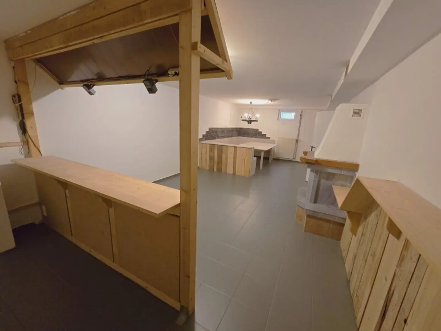 Raum 1 36,00m² welcher derzeit als Partyraum genutzt wird und über einen eigen Kamin verfügt.