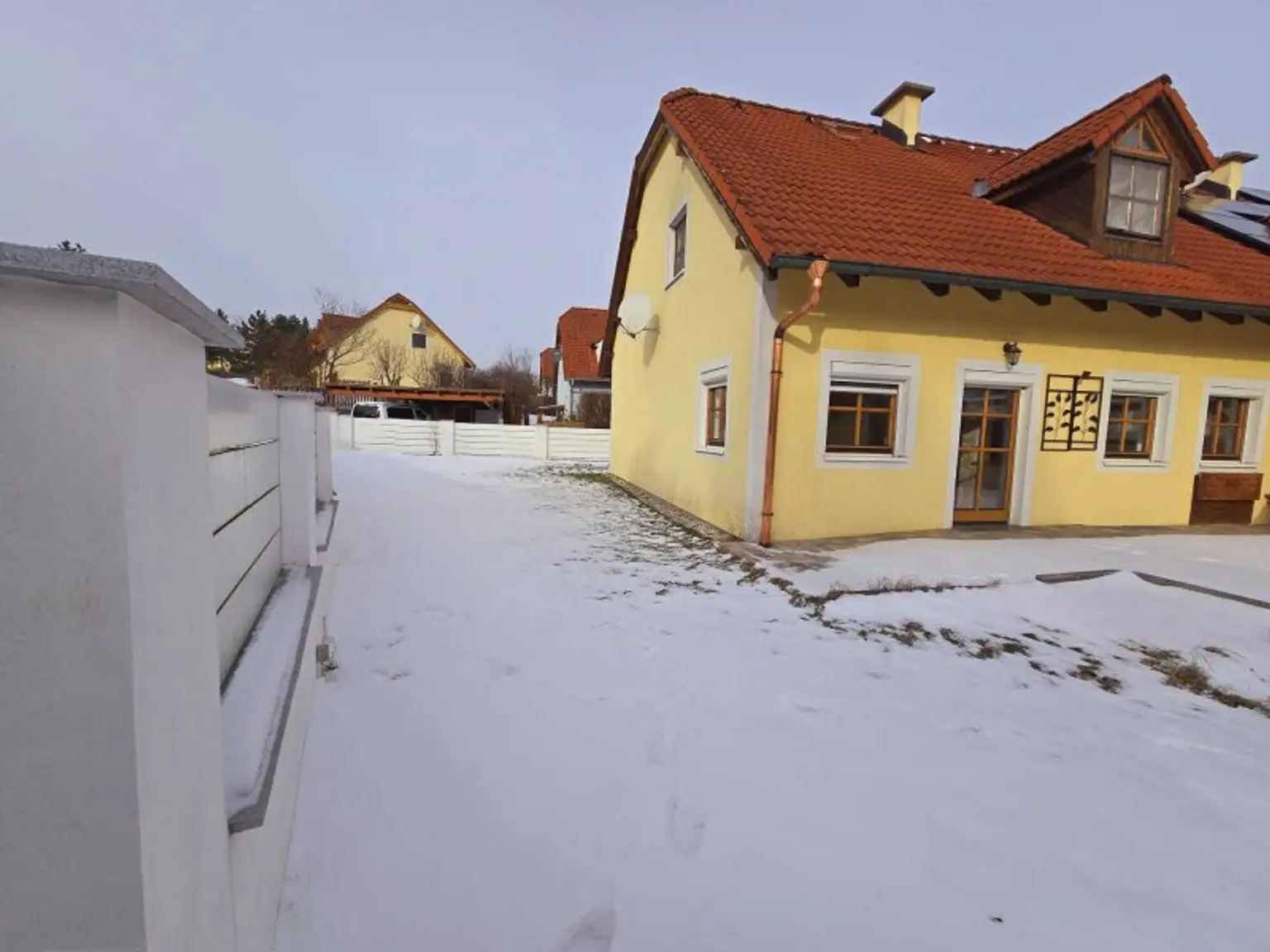 Diese gepflegte Doppelhaushälfte vereint großzügiges Wohnen mit ländlicher Idylle. Ein besonderer Blickfang ist der schöne weiße Zaun, der das Grundstück elegant einrahmt und für Privatsphäre sorgt.