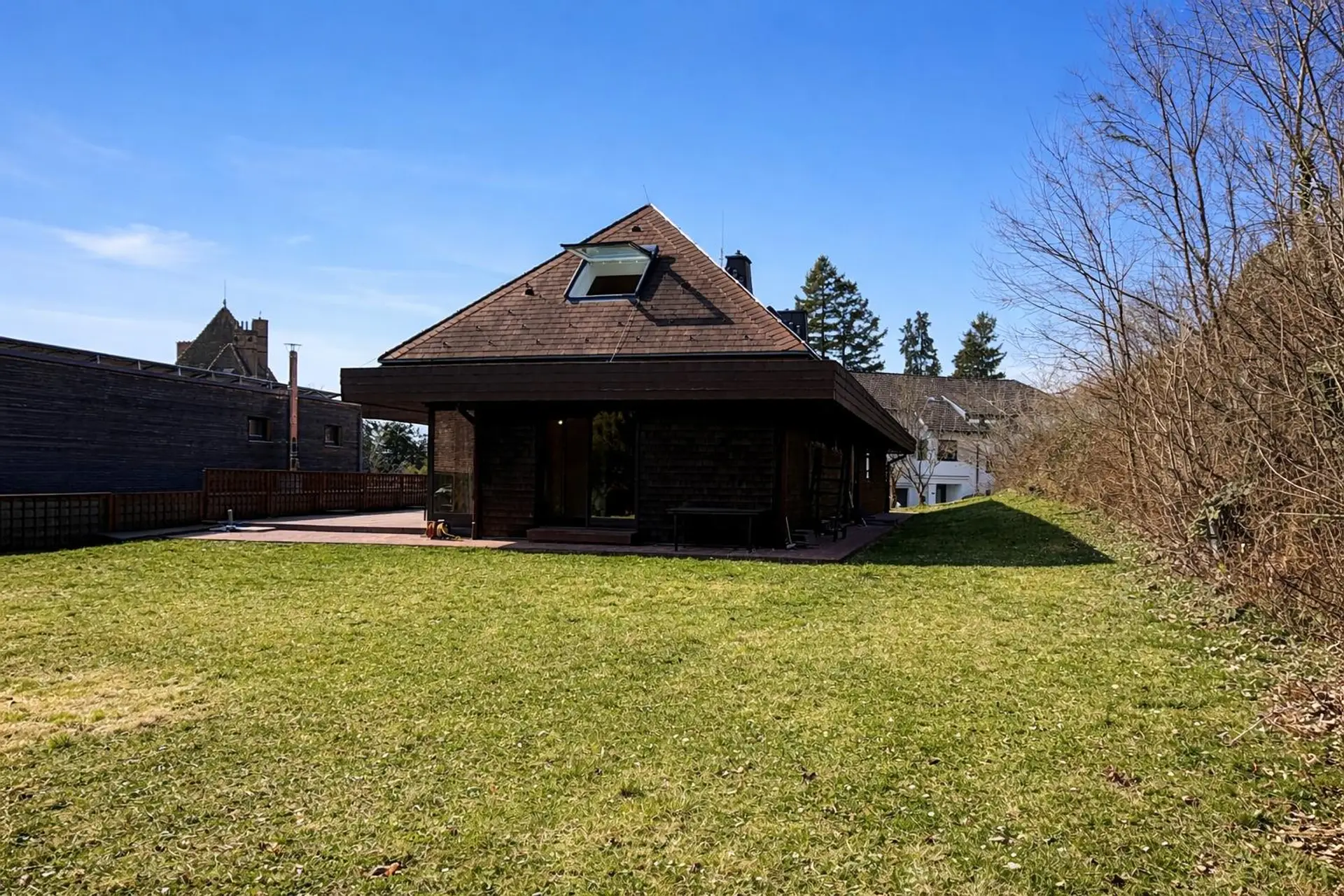 Der weitläufige Garten bietet zahlreiche Möglichkeiten zur individuellen Gestaltung – von großzügigen Terrassenflächen über Spielbereiche bis hin zu Pool oder Gartenlounge.