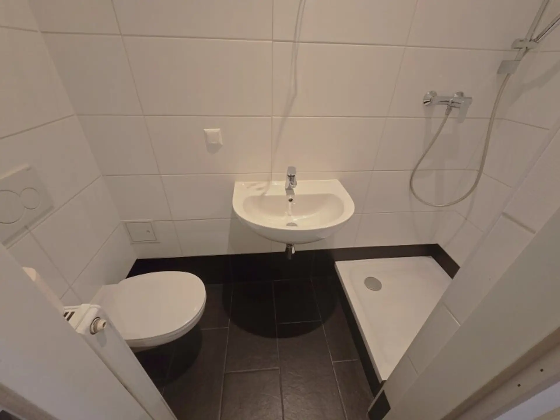 + Badezimmer 3,07 m² mit Dusche, Handwaschbecken und WC ausgestattet