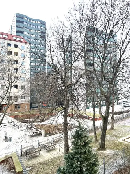 Die Wohnung ist Süd-West ausgerichtet und bietet einen schönen Blick in eine Parkanlage mit Altbaumbestand.