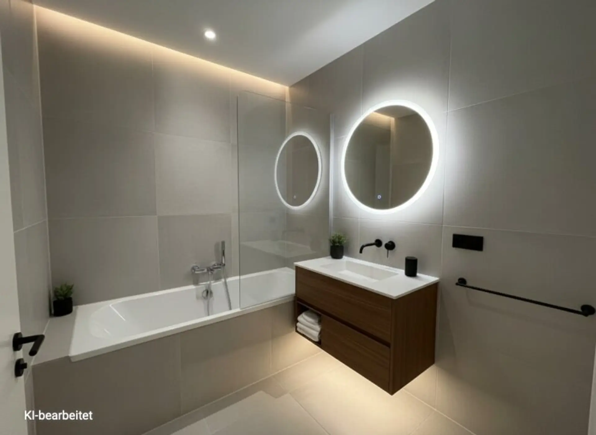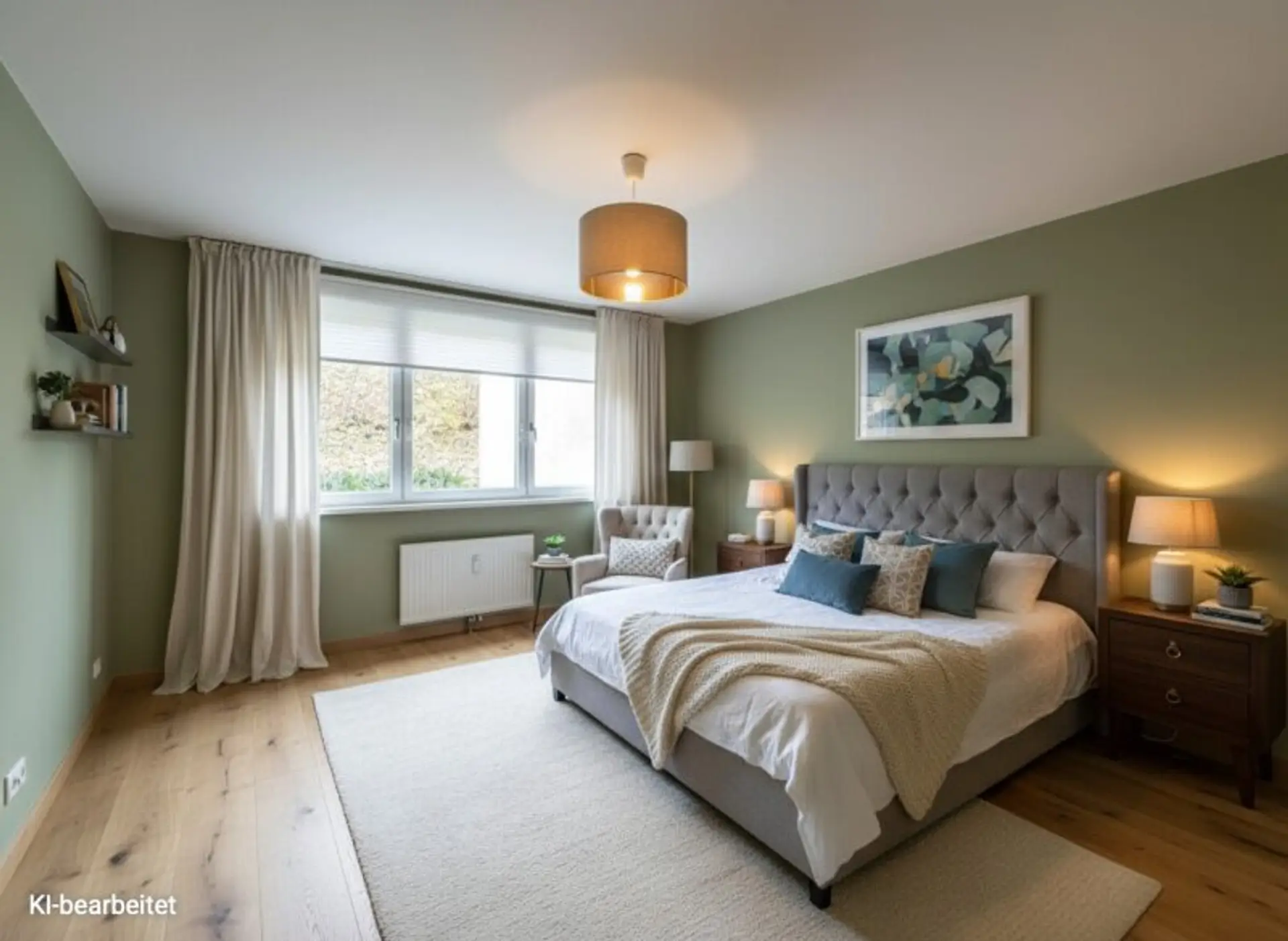 Die dargestellten möblierten Räume sind KI-generierte Visualisierungen und dienen lediglich der Veranschaulichung möglicher Einrichtungskonzepte. Die Möblierung und Sanierung ist nicht im Kaufpreis enthalten.