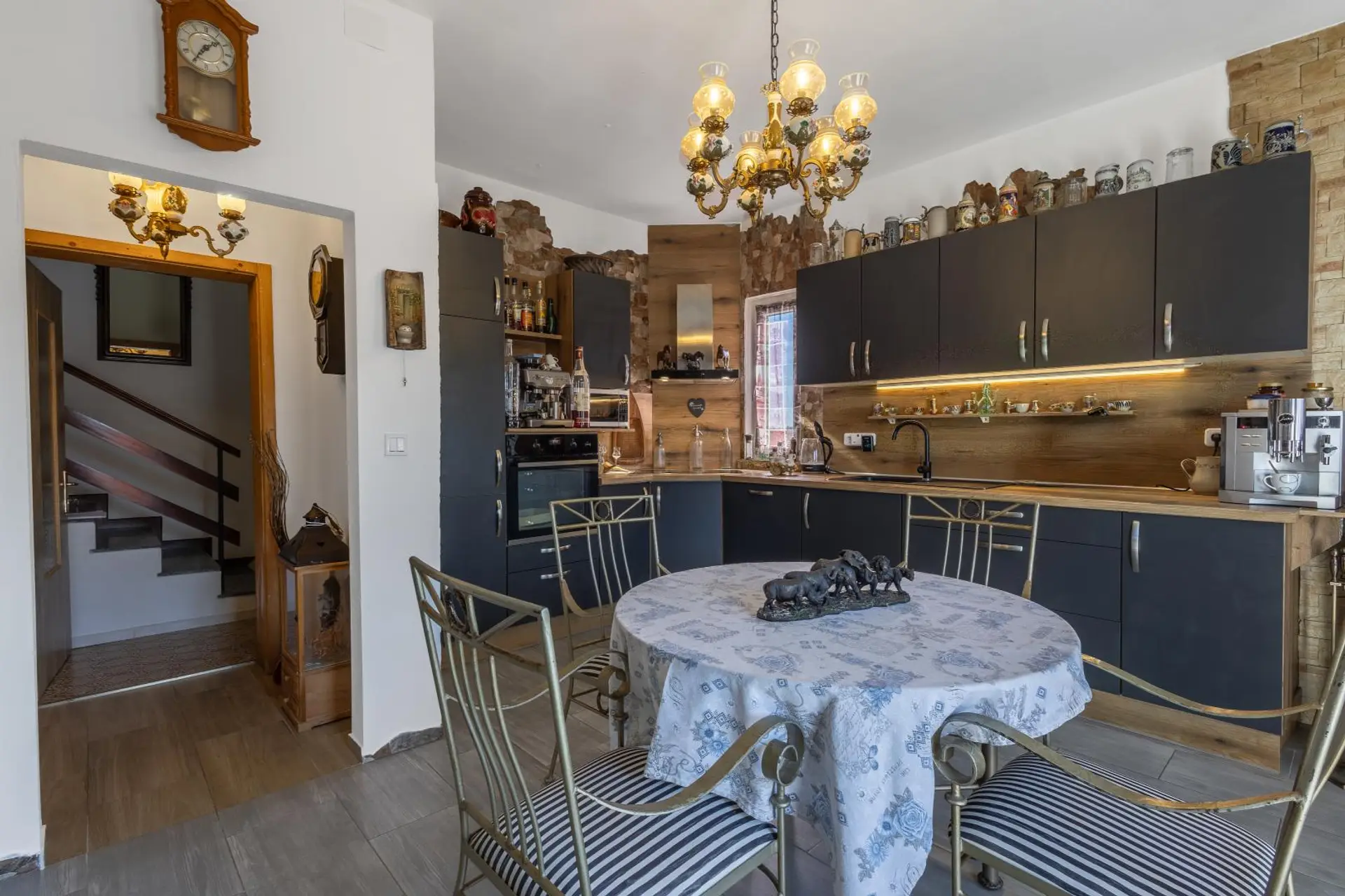 Dieses charmante Doppelhaus bietet zwei eigenständige Wohnungen mit ca. 70 m² pro Geschoss, großzügige Eckflächen, einen Innenhof, Lagerräume, Garage und Außenlager. Auf dem Grundstück befindet sich ein kleiner Merlot-Weinberg und Bauland, auf dem optional ein Pool realisiert werden kann.