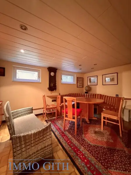 Der ausgebaute Wohnkeller eröffnet außergewöhnlich viele Nutzungsmöglichkeiten und ist durch die Hanglage angenehm in den Garten eingebunden.