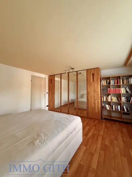Im Obergeschoss befinden sich zwei Schlafzimmer, eines davon mit direktem Balkonzugang.