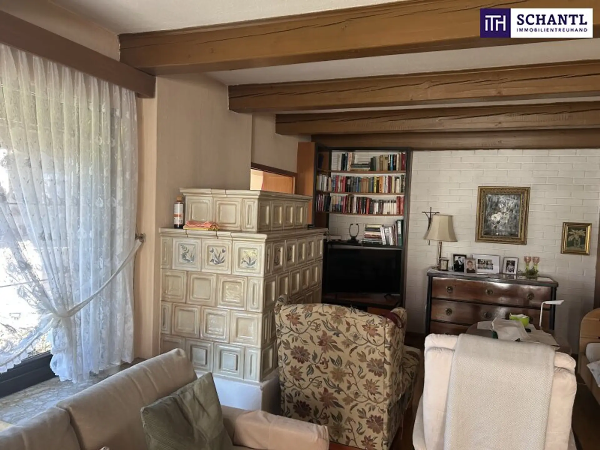 Schon beim Betreten des Hauses spürt man den warmen Charme vergangener Jahrzehnte: Ein helles, einladendes Wohnzimmer bildet das Herzstück, geprägt vom behaglichen Kachelofen, der an kalten Tagen ein wunderbarer Treffpunkt für die ganze Familie ist. Direkt angrenzend öffnet sich der Wintergarten, der heute als Esszimmer genutzt wird. Hier genießt man den Ausblick in den Garten und die besondere Atmosphäre, die dieser Raum zu jeder Jahreszeit bietet. Eine kleine Leseecke im Erker schafft zusätzlich einen Rückzugsort, der sofort zum Verweilen einlädt.