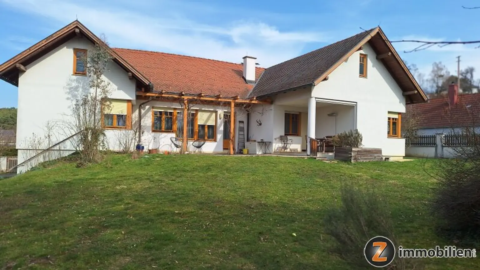 Ein besonderes Highlight ist die große Terrasse, die romantisch von Weinreben umrankt ist: Der perfekte Ort für entspannte Stunden im Freien oder gemütliche Abende mit Familie und Freunden.